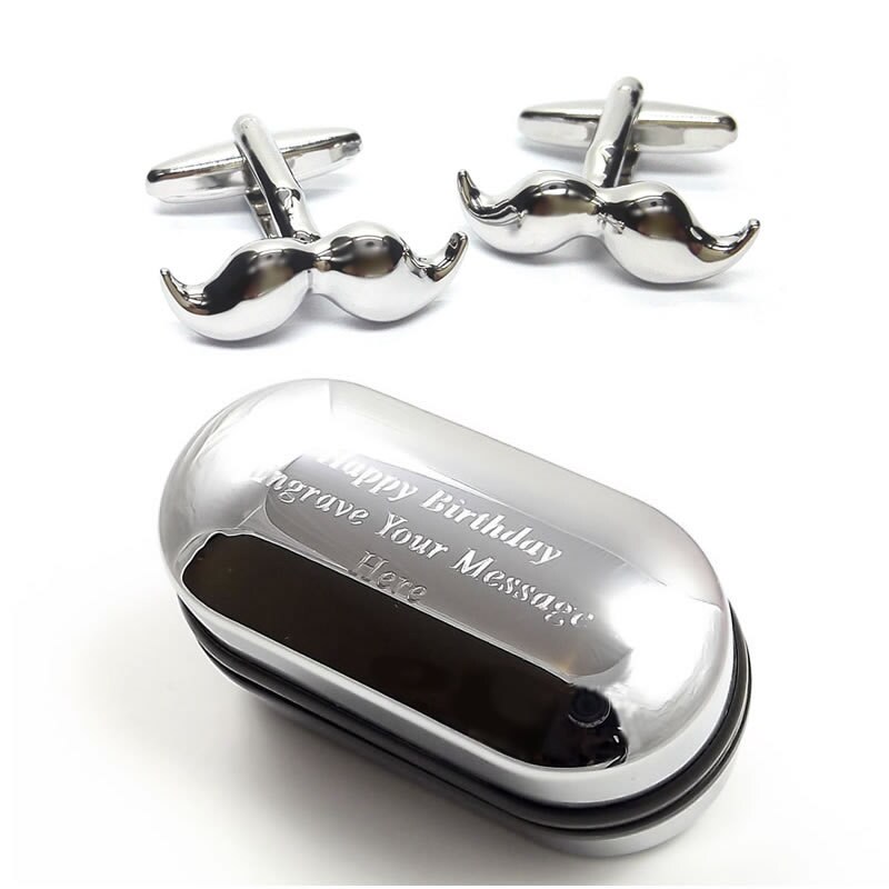 Novelty Moustache Design Cufflinks & Engraved Gift Box (X2AJ293...