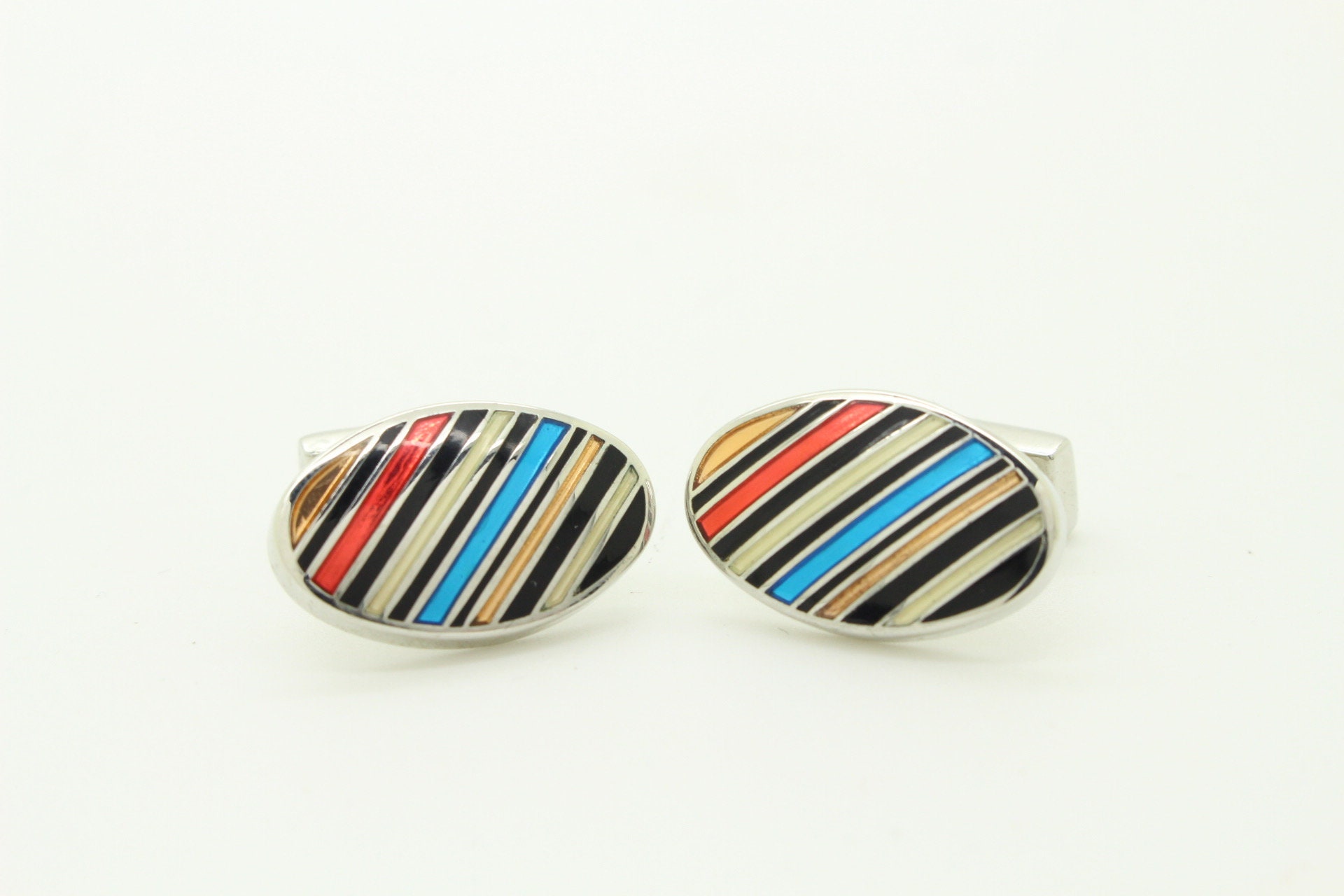 Thomas PInk vintage oval cuff links made in England. Solid metal co...