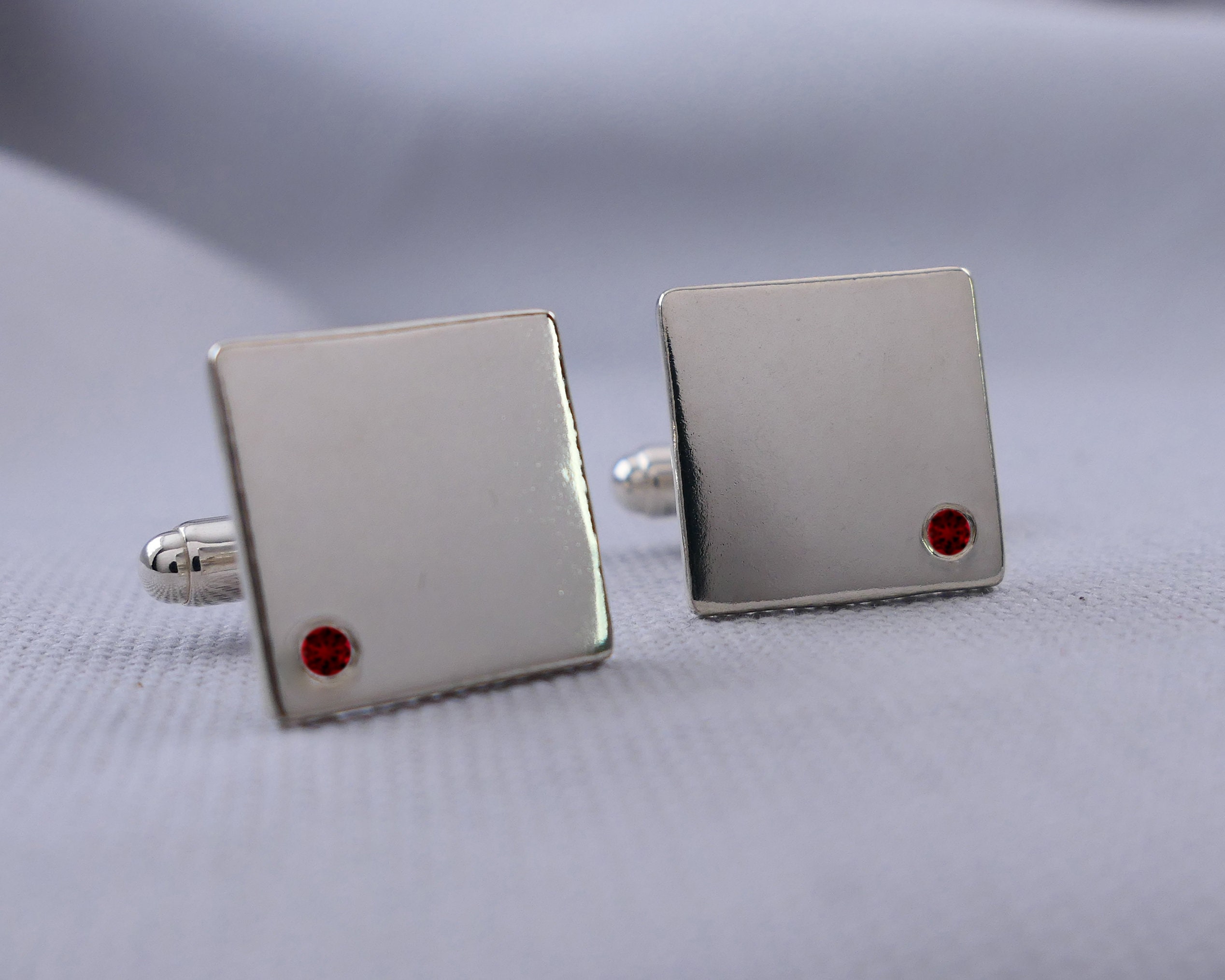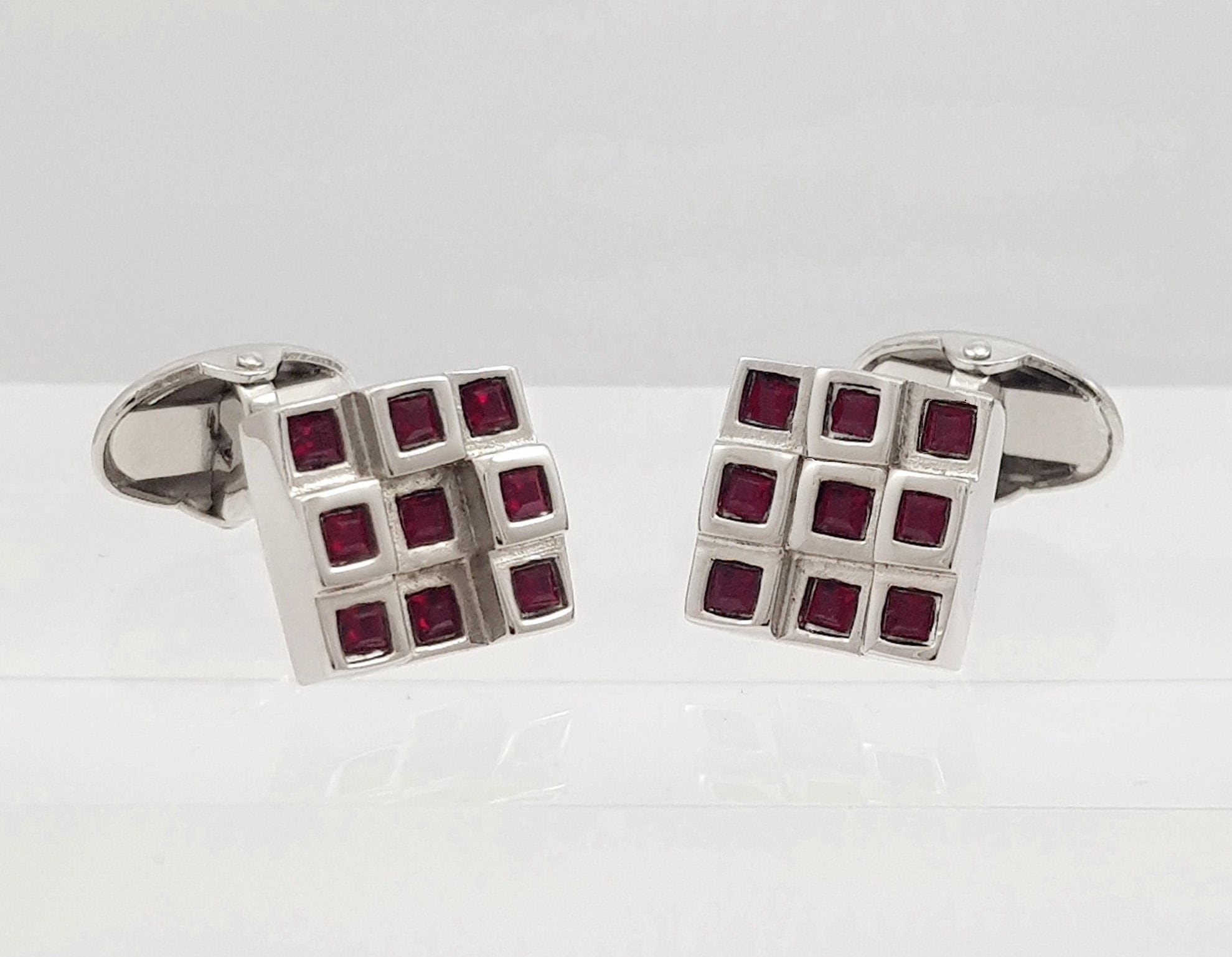 Ruby Flush Set Cuff links 15th Anniversary Cufflinks Modern Ruby Cu...
