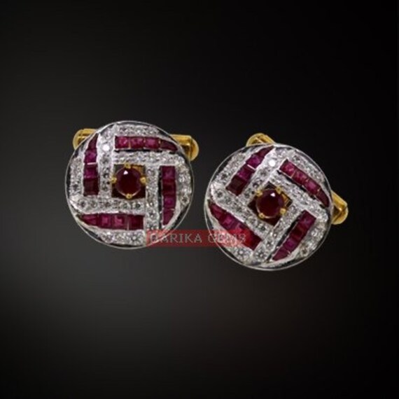Product Name :- Gemstone Cufflinks Stone Name :- Lab crown ruby Metal :- 92.5 Sterling Silver with 1...