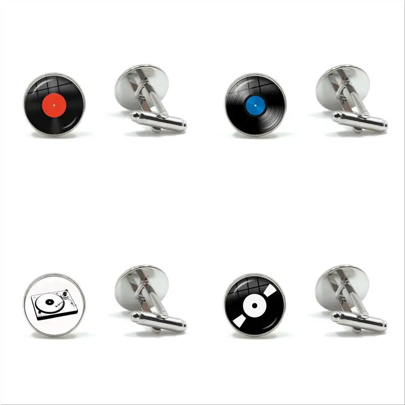 Vinyl Record Cufflinks DJ for Men Retro Music Art Cuff Link Round Dome Glass Cabochon Fashion Men Wo...