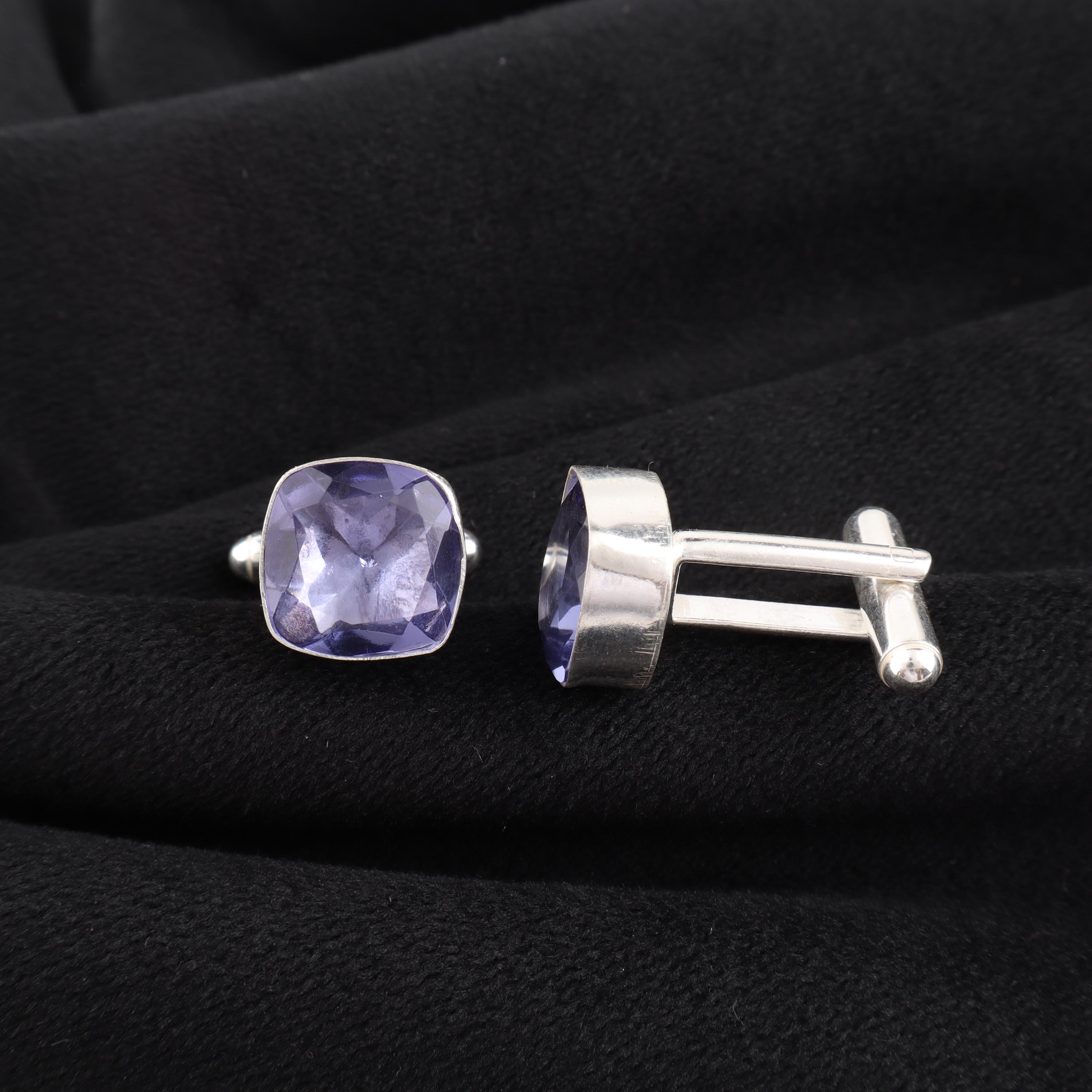 Iolite Gemstone Silver Cufflinks, 925 Sterling Silver Iolite Jewelr...