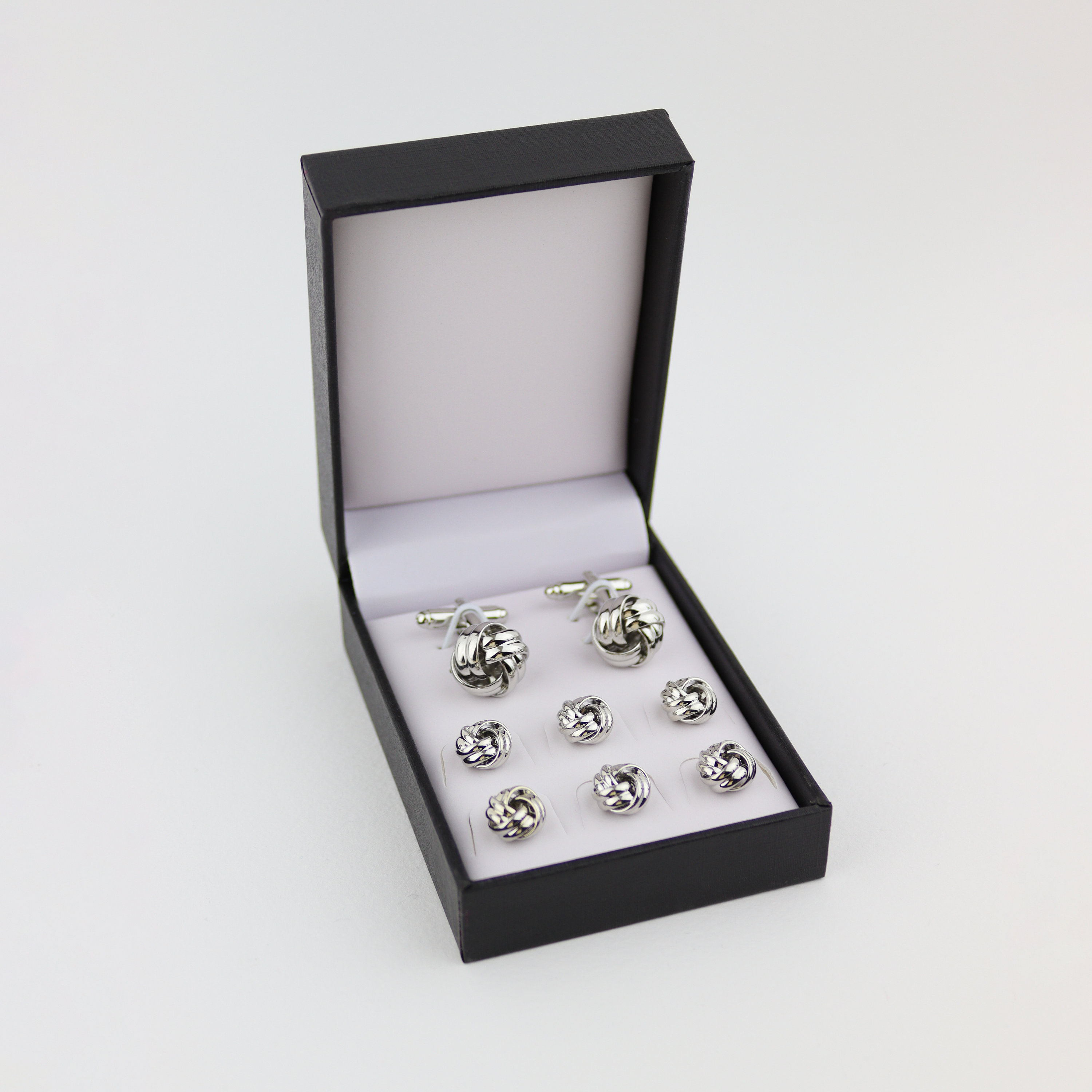 Silver Twist Dress Shirt Tuxedo Studs And Cufflink Set. Silver Cuff...