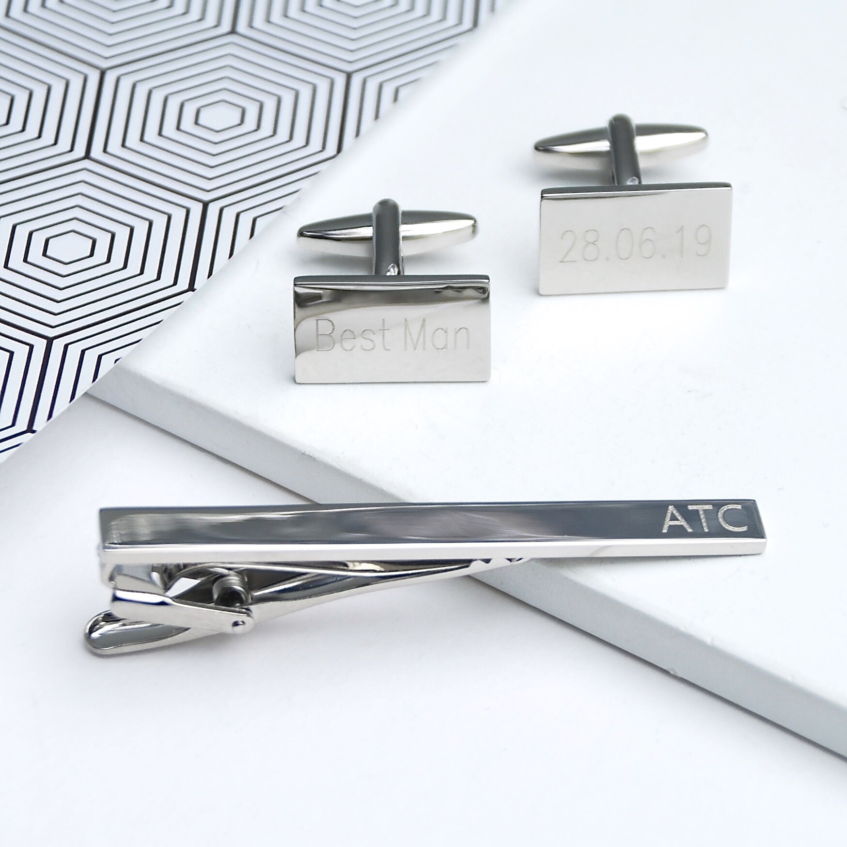 Our contemporary silver personalised cufflinks and tie clip set is the perfect usable keepsake. The ...