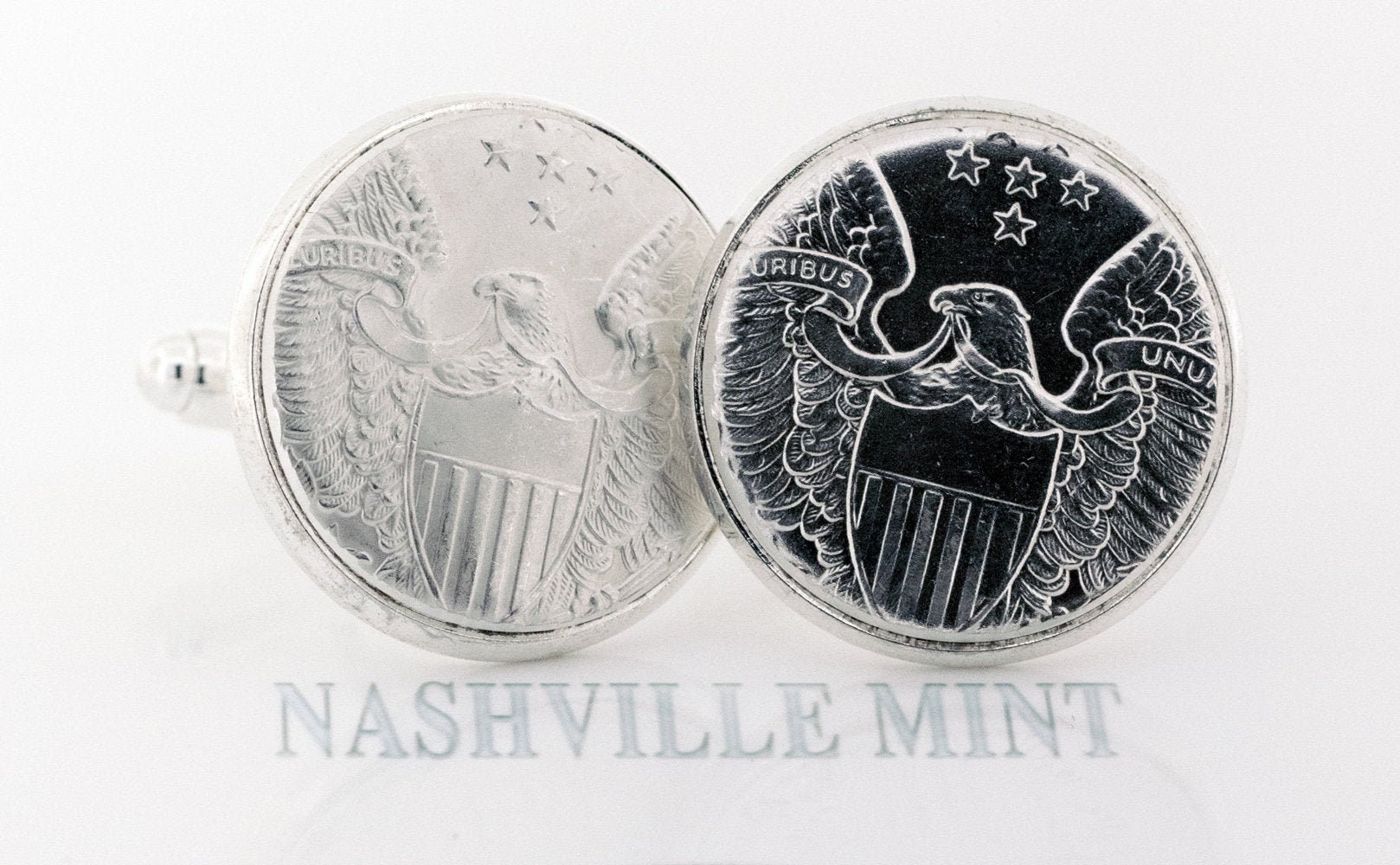 This listing is for a pair of 99.9% Silver American Eagle Dollar cufflinks hand made from the center...