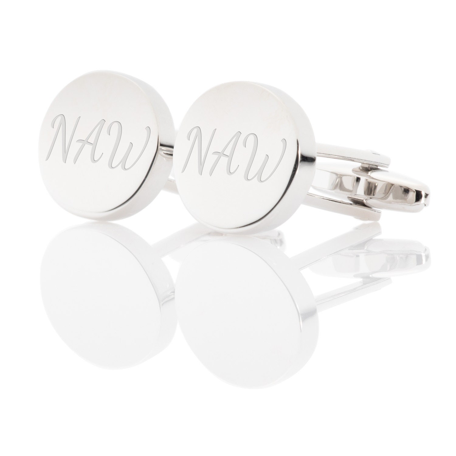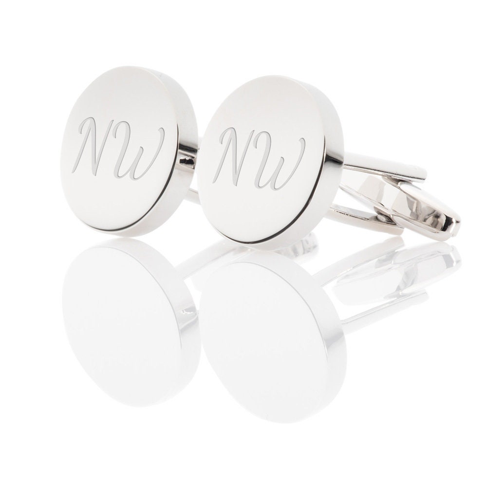 Personalised Silver Cufflinks | Chrome or Leatherette Case | Engraved Text, Round Custom Cuff links ...