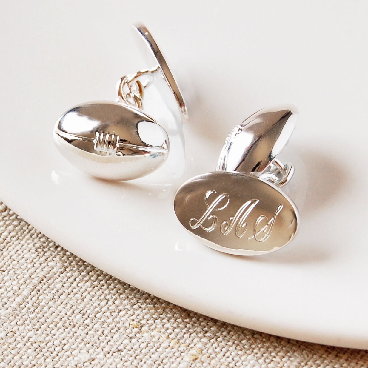 Personalised Rugby Cufflinks, Rugby Cufflinks, Silver Rugby Ball Cu...