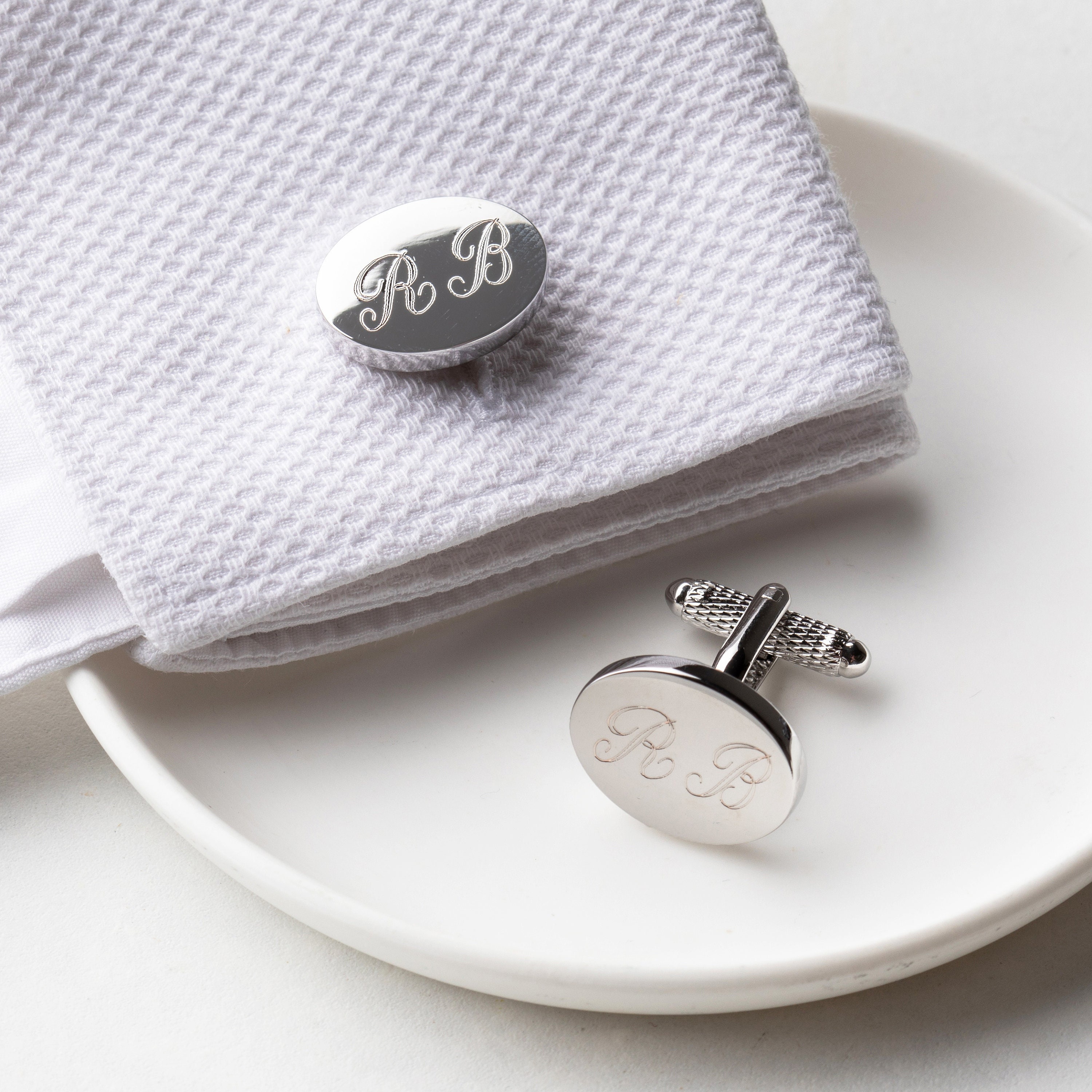 Engraved Oval Sterling Silver Cufflinks - Personalised Wedding Gift