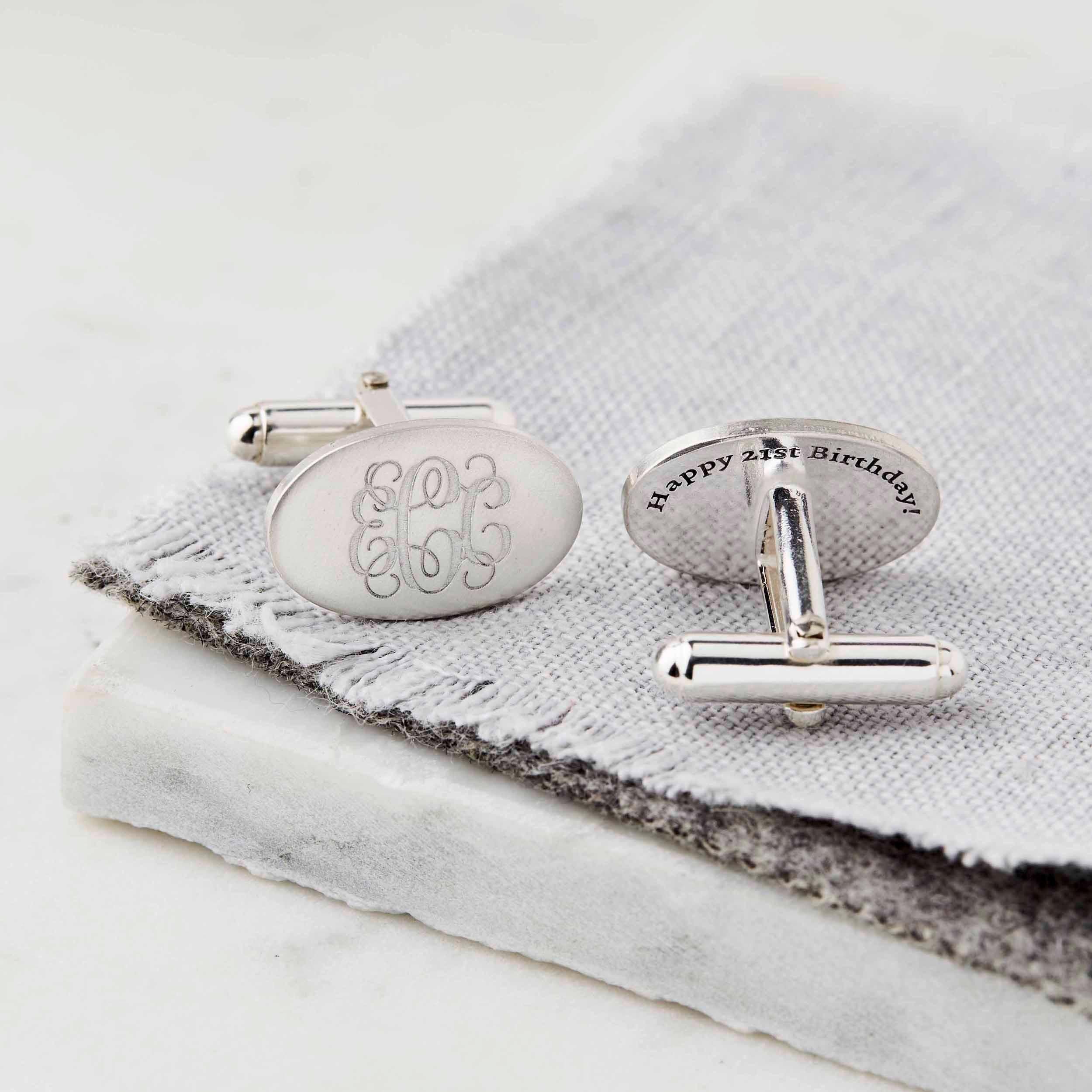 Oval Monogram Silver Cufflinks, Personalised Monogram Cufflinks, In...