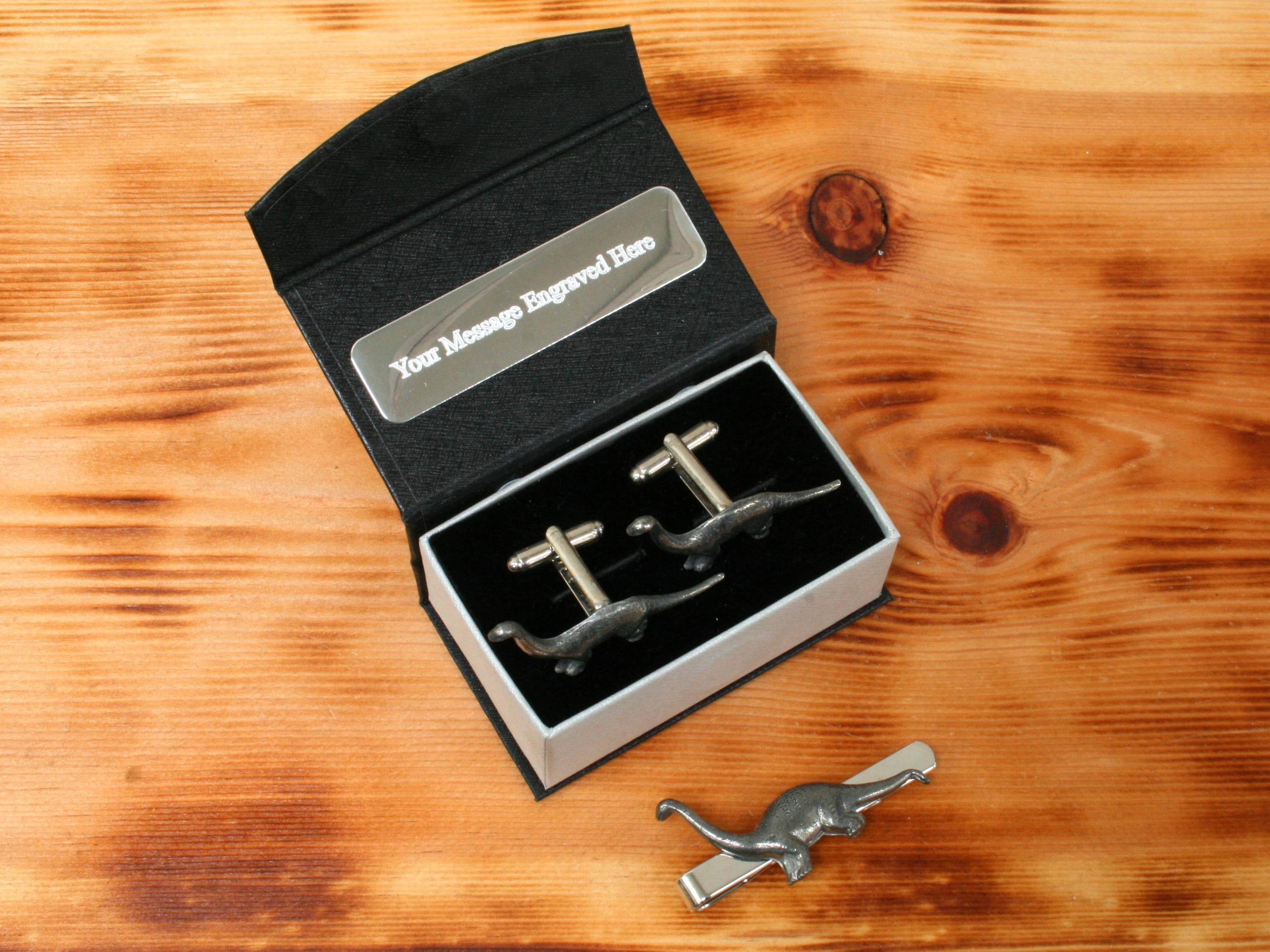 Dinosaurs Cufflinks & Tie Clip Set Pewter UK Handmade In Birthd...