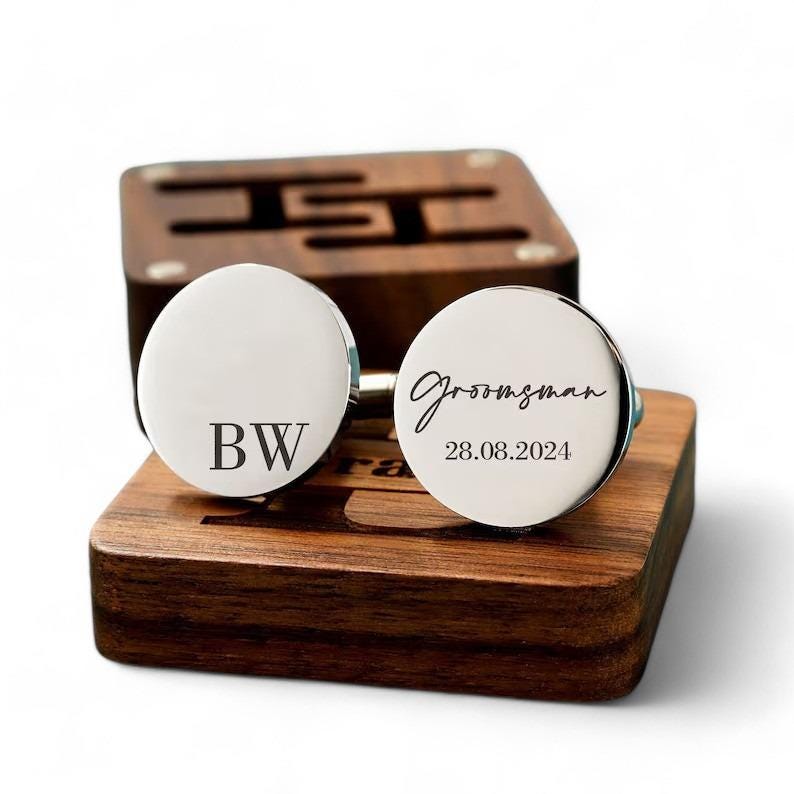 Engraved Wedding Cufflinks, Personalised Wedding Party Cufflinks, B...