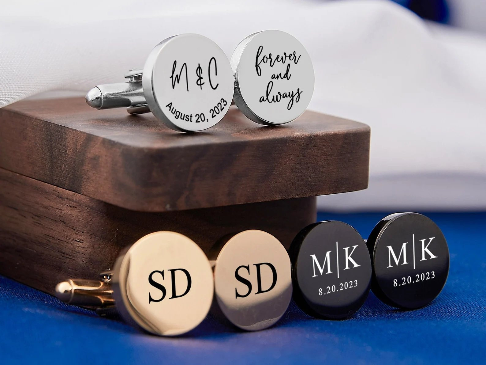 "Strength in Style: Mens engraved initial cufflinks, Timeless Memories, Carved in Stone. Elevat...