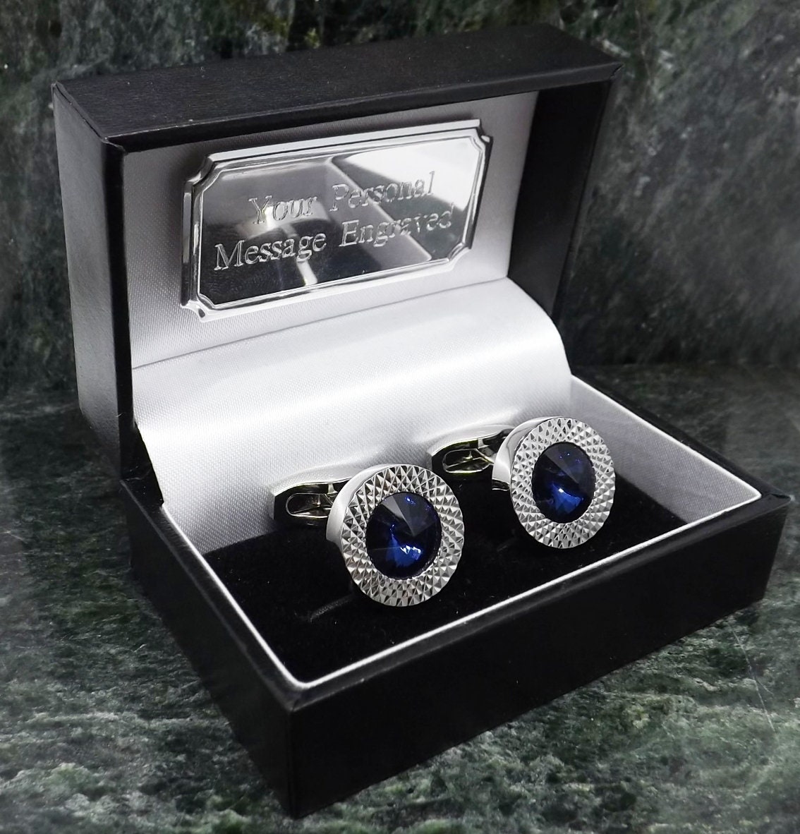 Blue Swarovski Cufflinks Personalised Cufflinks Crystal Cufflinks G...