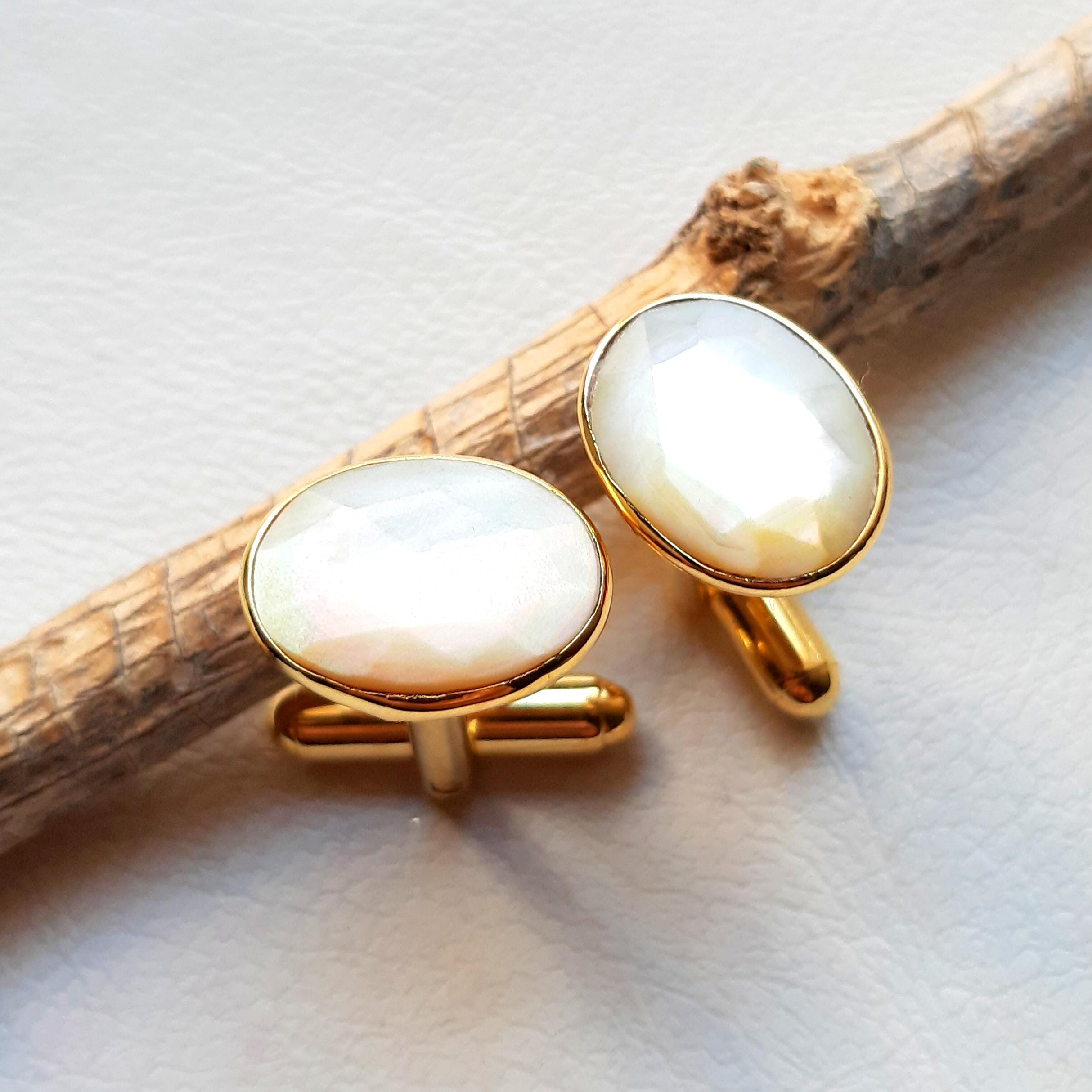 Natural Mother Of Pearl Gemstone Cufflinks, Gold Vermeil Cufflinks,...