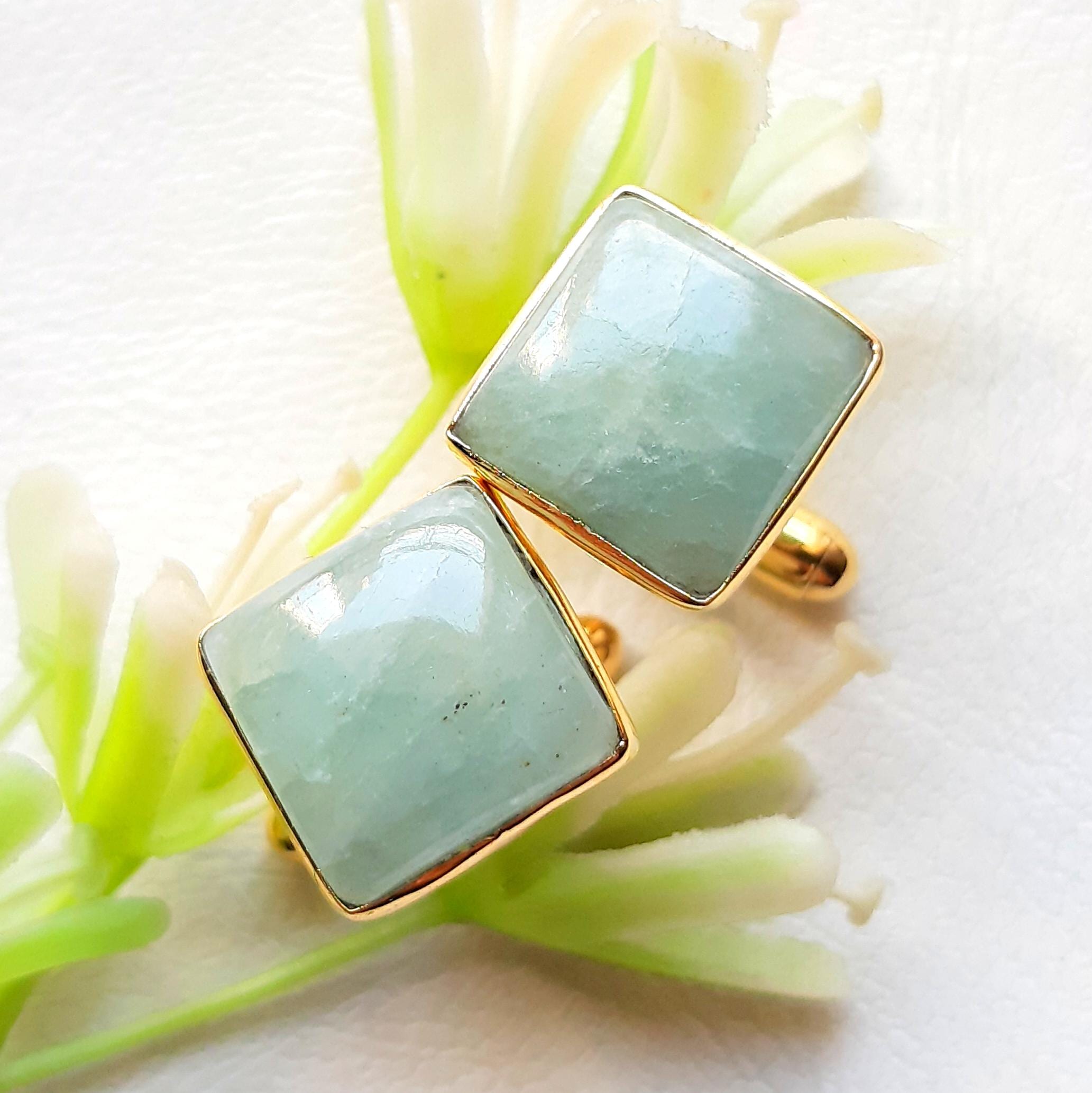 Natural Aquamarine Gemstone Gold Vermeil Smooth Finish Cufflinks For Men And Women For Daily And Par...