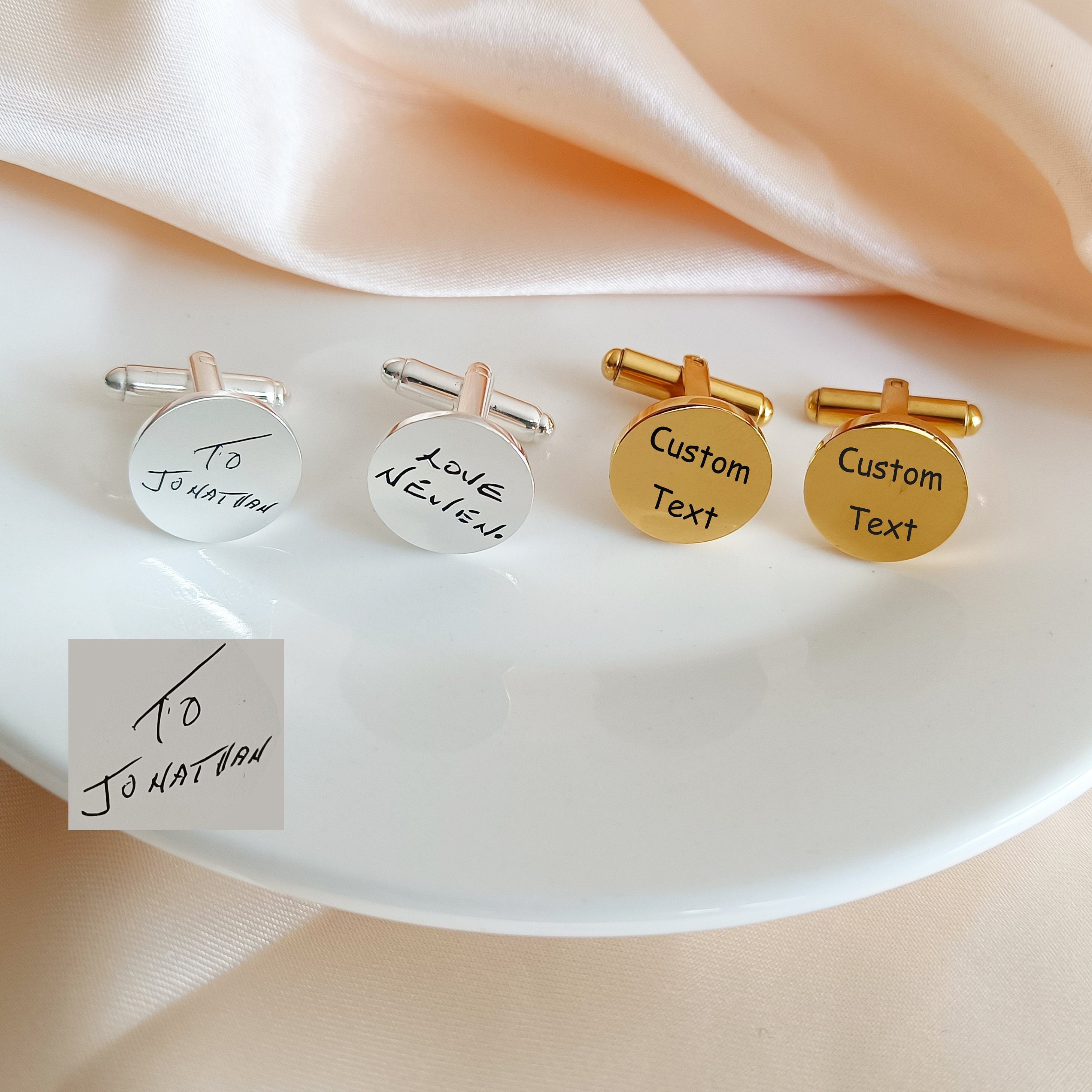 Personalized Cuff Links,Handwriting Cuff Links,Custom Signature Cuff Links,Groom Cuff Links,Men's En...
