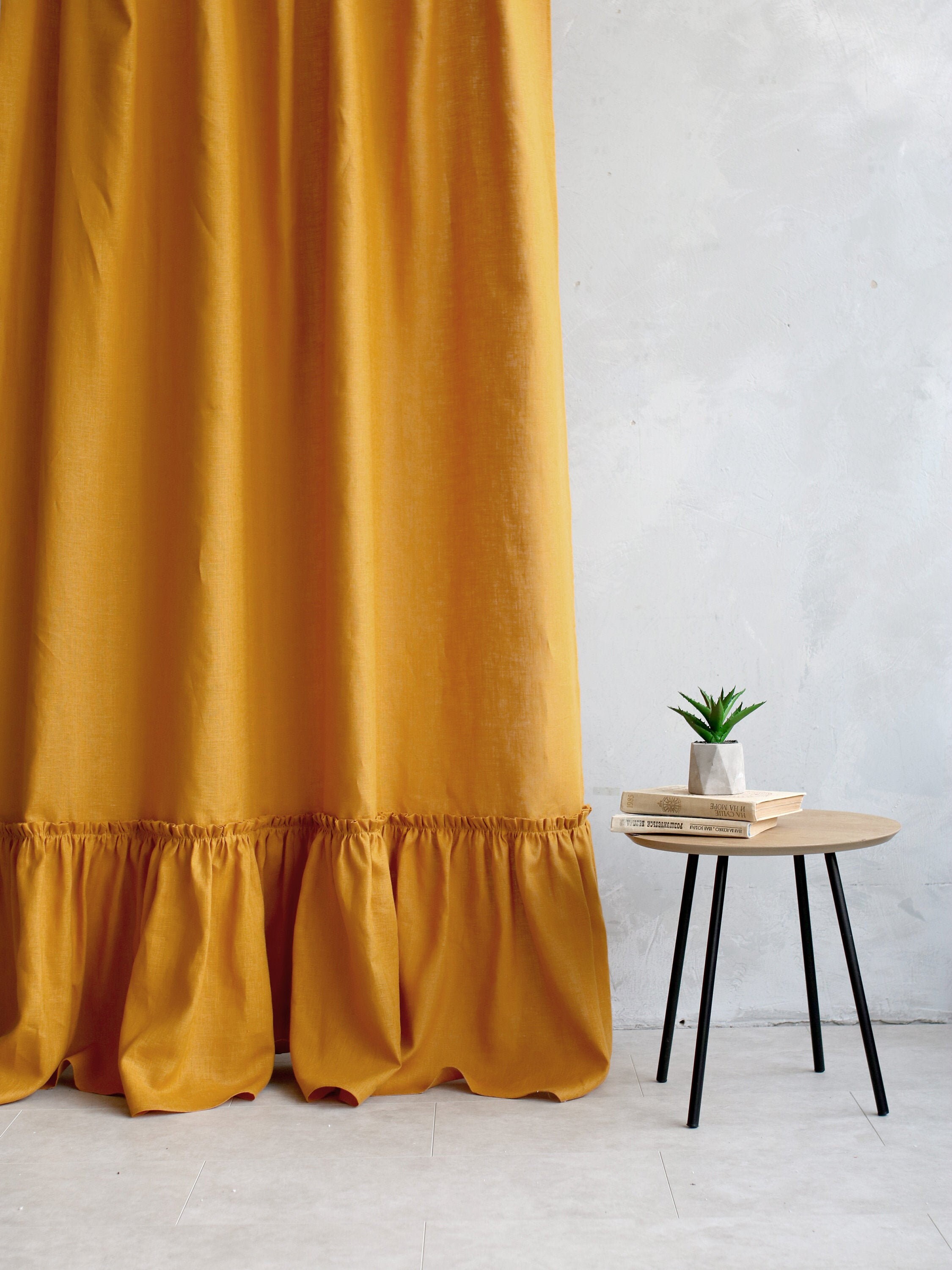 linen curtains mustard, farmhouse curtains, linen ruffled curtain p...