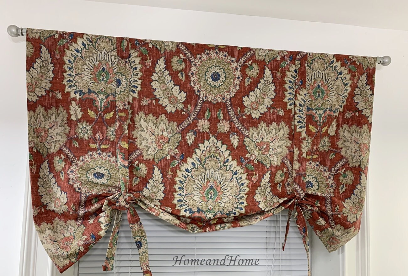 This listing is for one (1)unlined or lined designer Fabric tie up Valance. Medium weight high-quali...