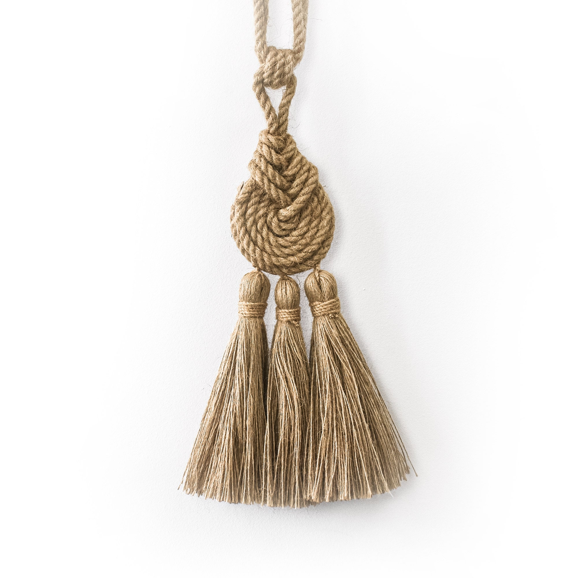 Double Knot Jute Curtain Tie Back, Coastal Curtain Tie Back, Bohemi...