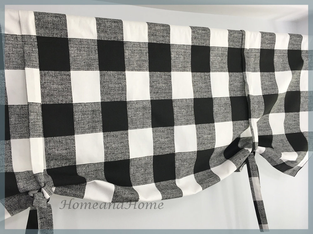 Tie Up Curtain. Large Plaid Valance Black White Valance French gray...