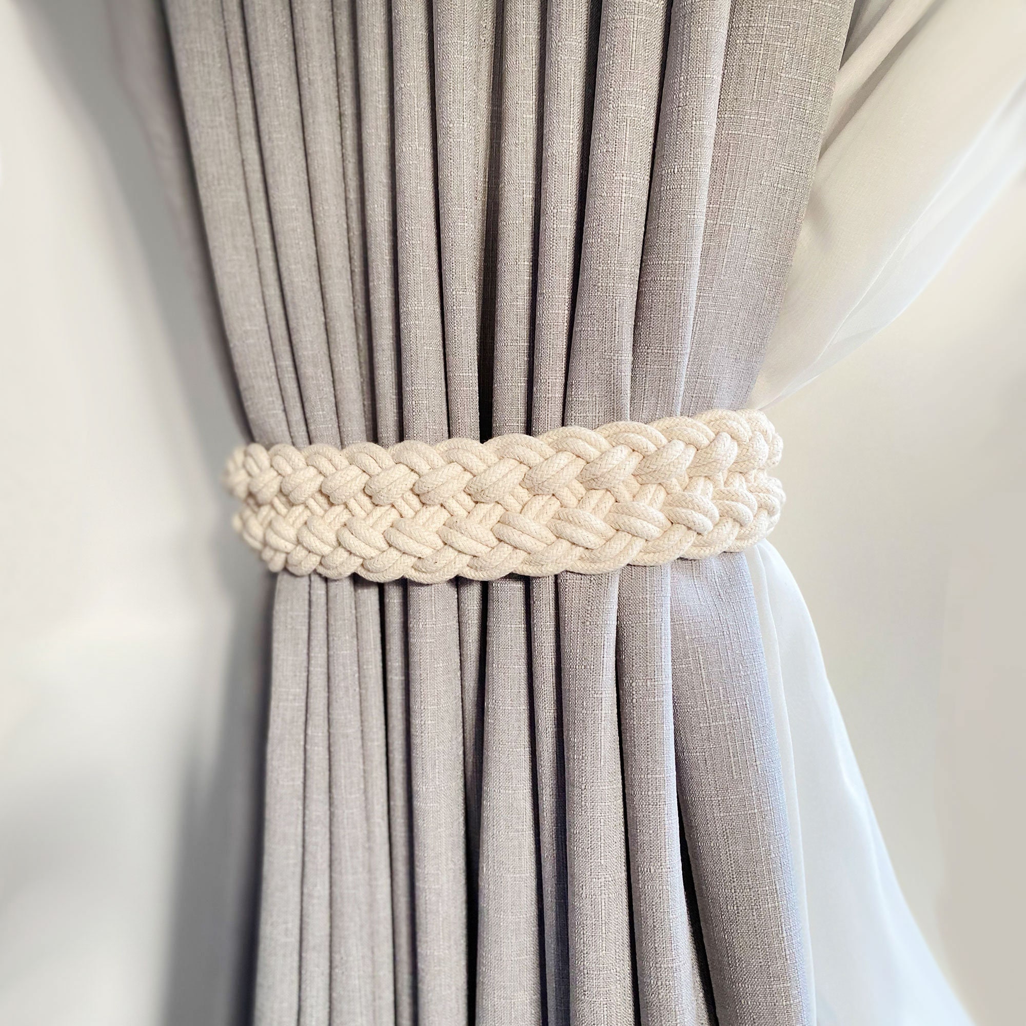 Braided Cotton Curtain Tie Back, Bohemian Chic Curtain Tie Back, Co...