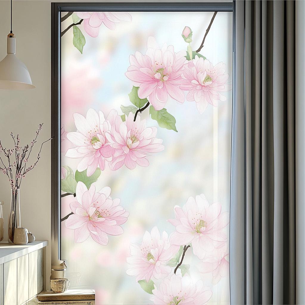 Pink Cherry Blossom Window Privacy Film - Decorative Floral Frosted...