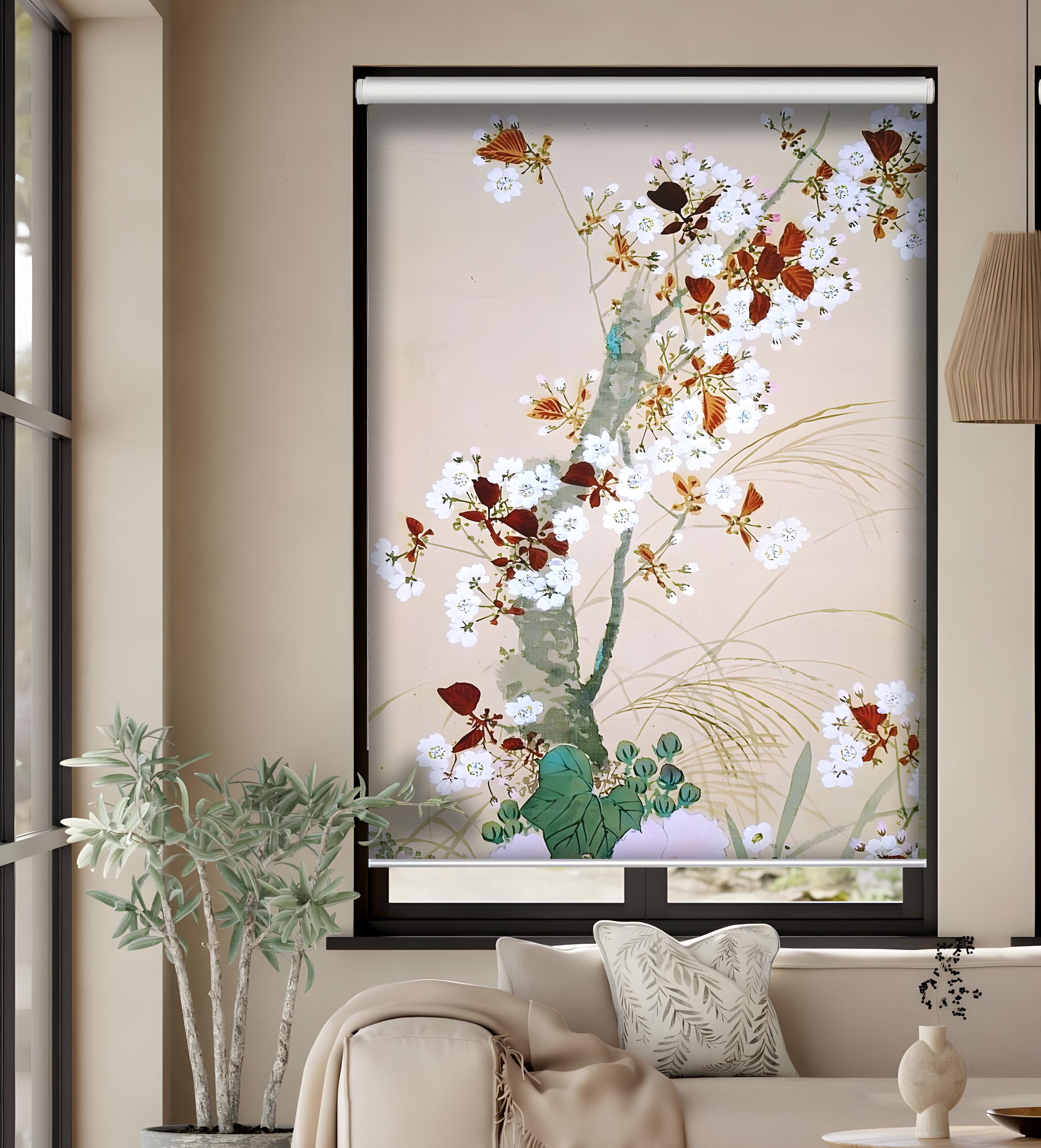 Natural landscape Window Curtains Minimalistic Cherry blossoms Wind...