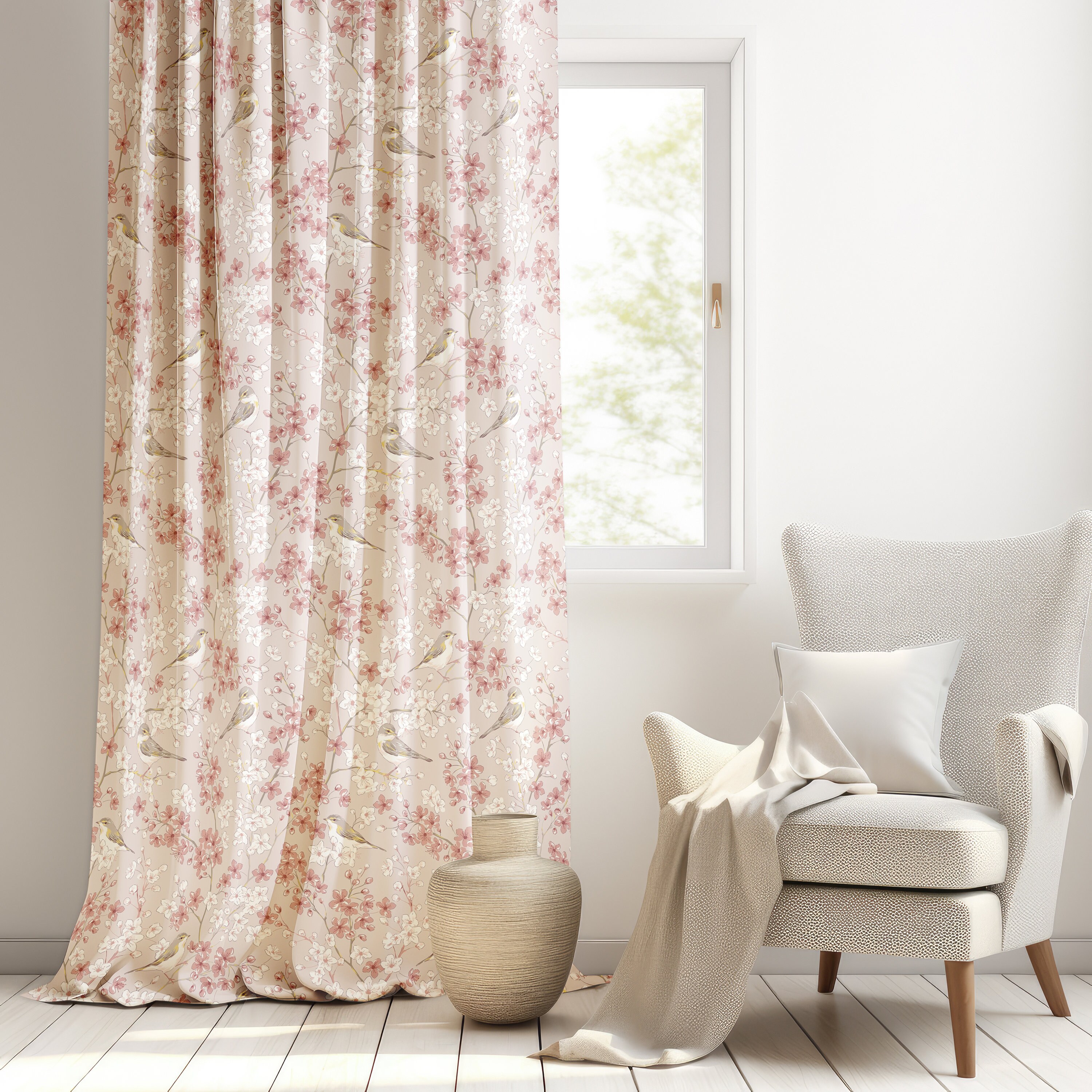 Create a serene and elegant atmosphere with these Watercolor Cherry Blossom Curtains, featuring a so...