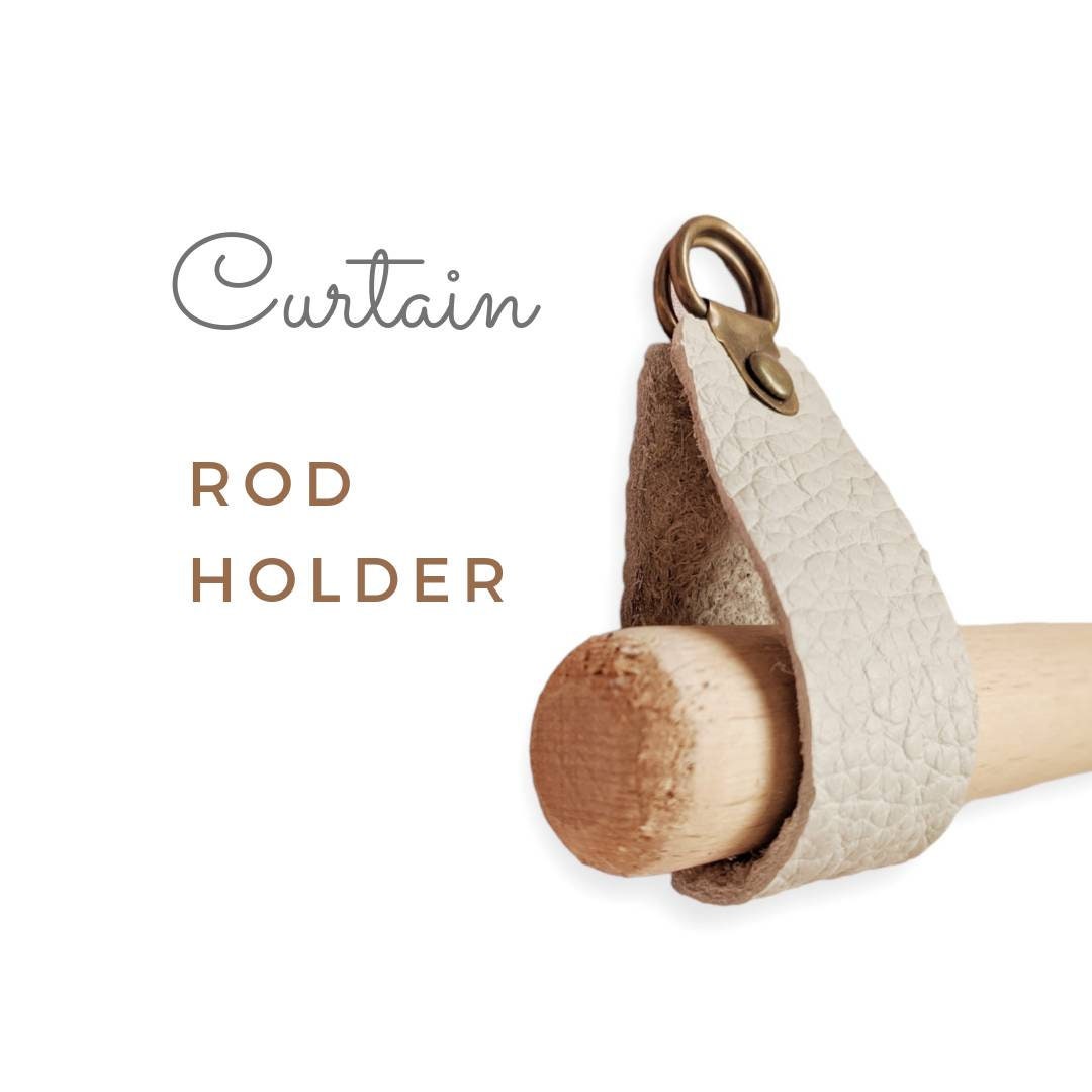 Leather Curtain Rod Holder Strap, Wood Curtain Rod Bracket, Boho Curtain, Window Treatments, Curtain...