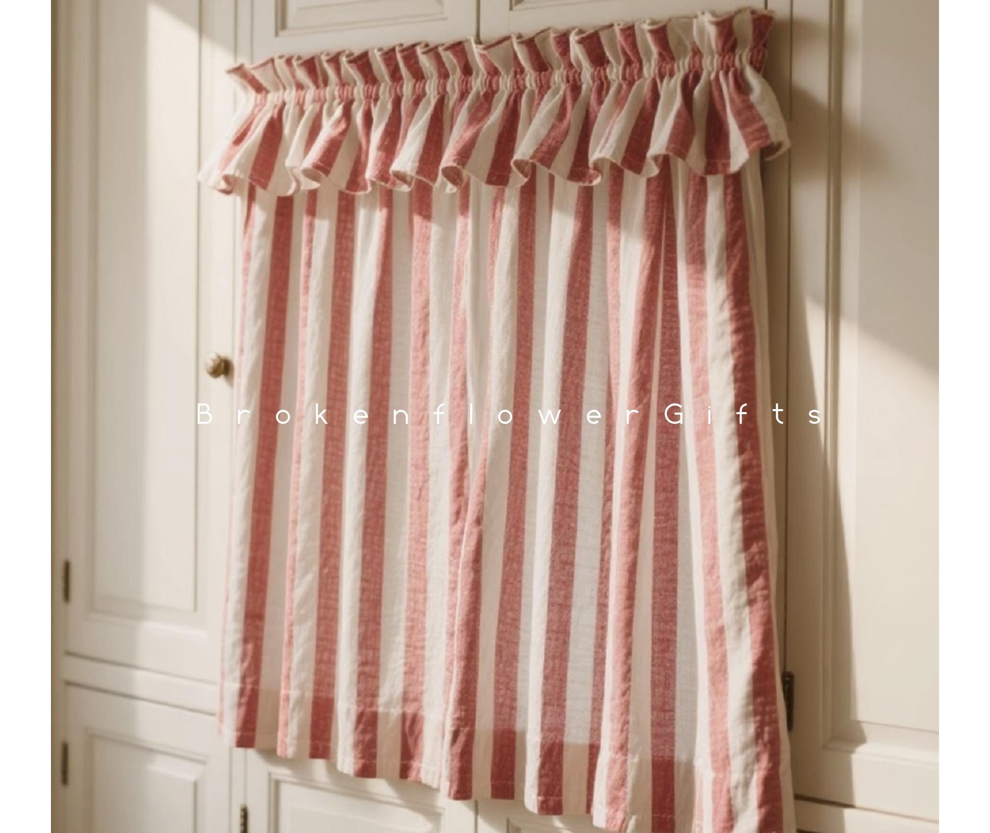 Red Striped window drapery, cafe window treatment for kitchen,short...