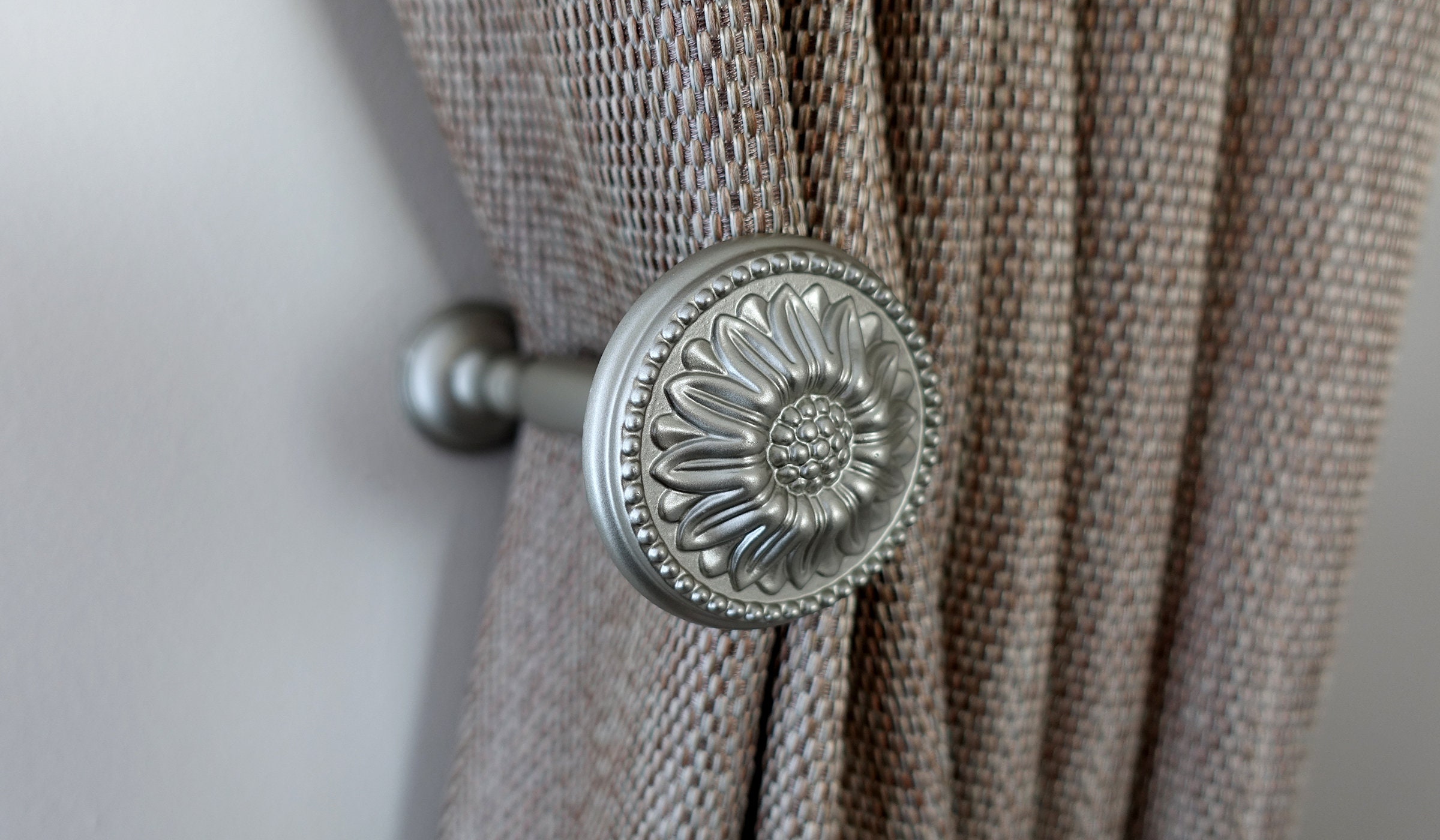 Satin Chrome Matt Flower 'Camomile' Metal Curtain Holdbacks - 120mm...
