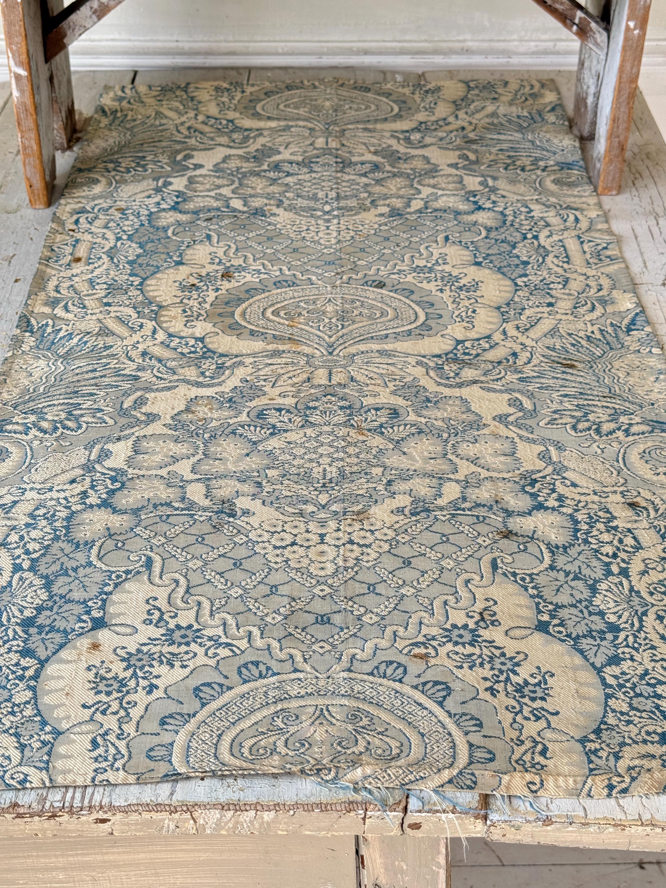 20.5 x 40 17th / 18th century hand woven silk damask blue neutral F...