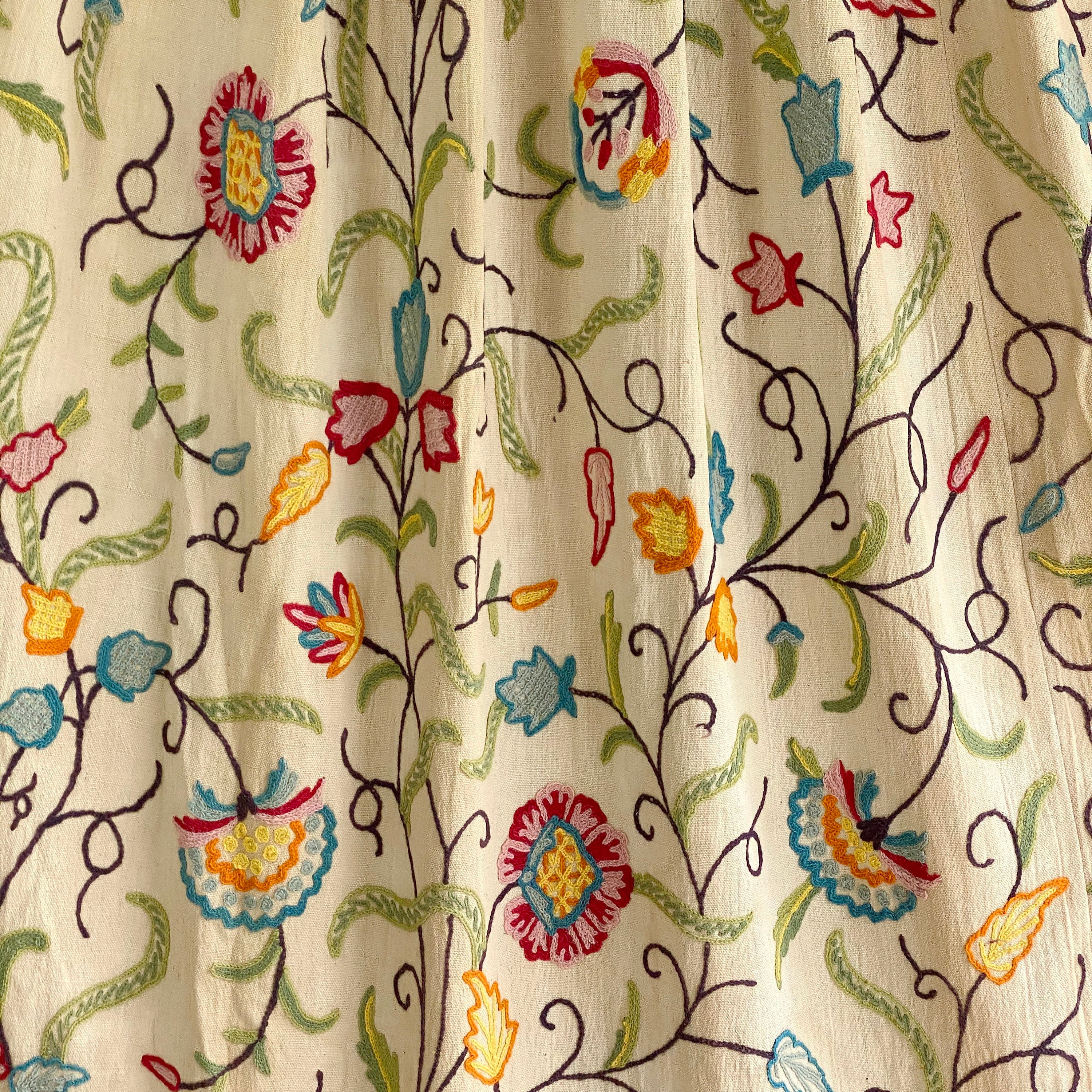 Crewel work curtain Vintage French textile handmade embroidery hand...