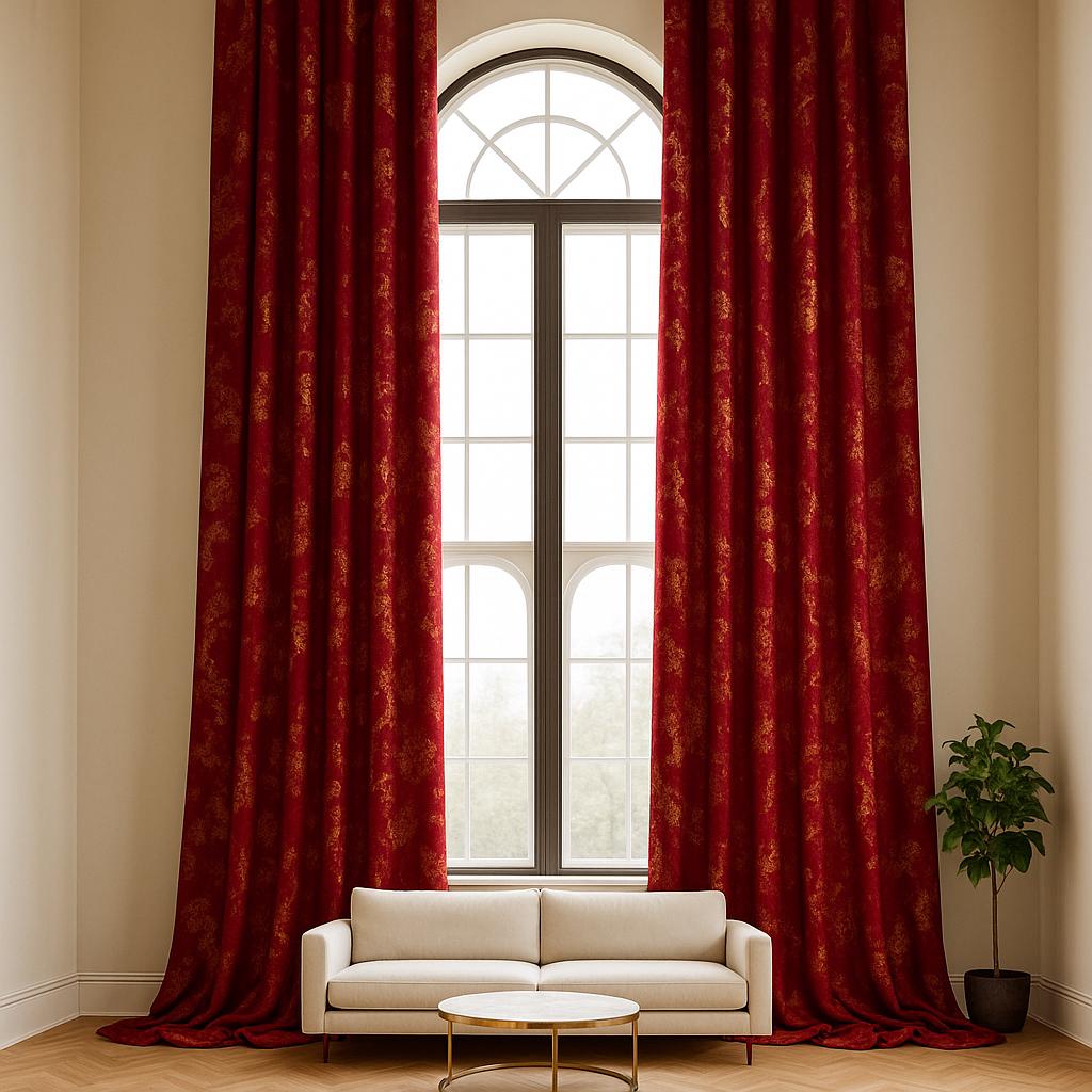 Luxury Extra Long Dark Red Curtains with Gold Accents, High Ceiling...