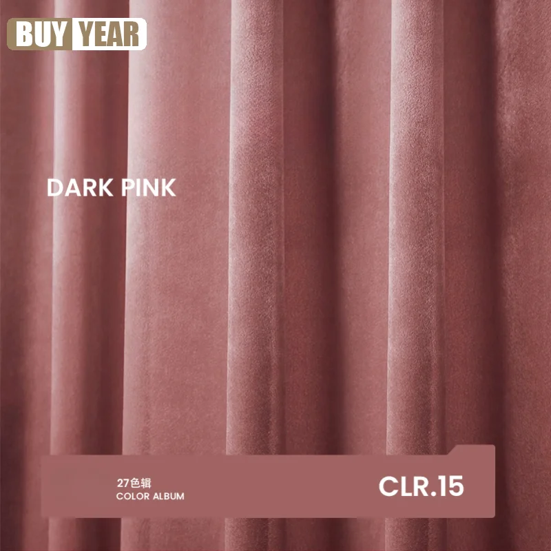 French Luxury Velvet Curtains Rose Pink Solid Color Girl Wedding Bedroom Blackout Curtains for Livin...
