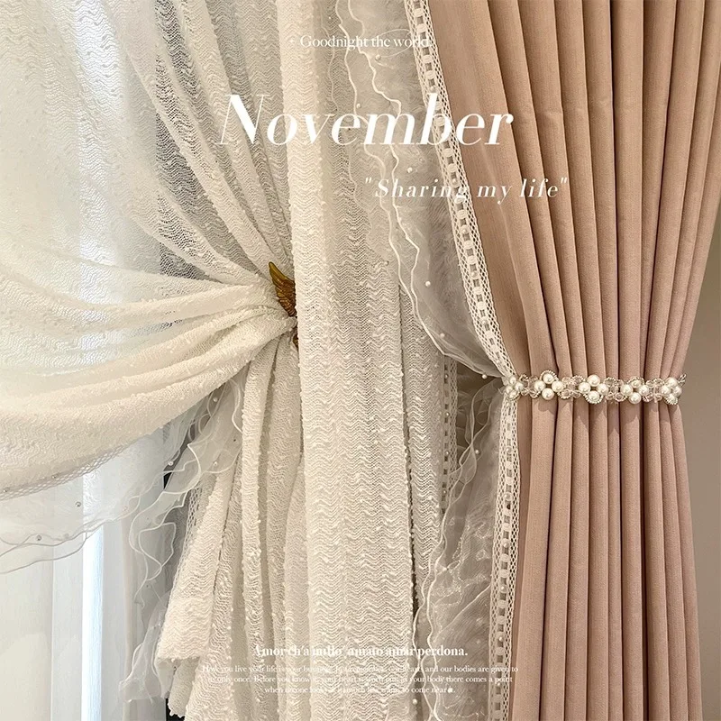 French Vintage Dirty Pink Cream Velvet Curtains Living Room Bedroom Lace Blackout Chenier