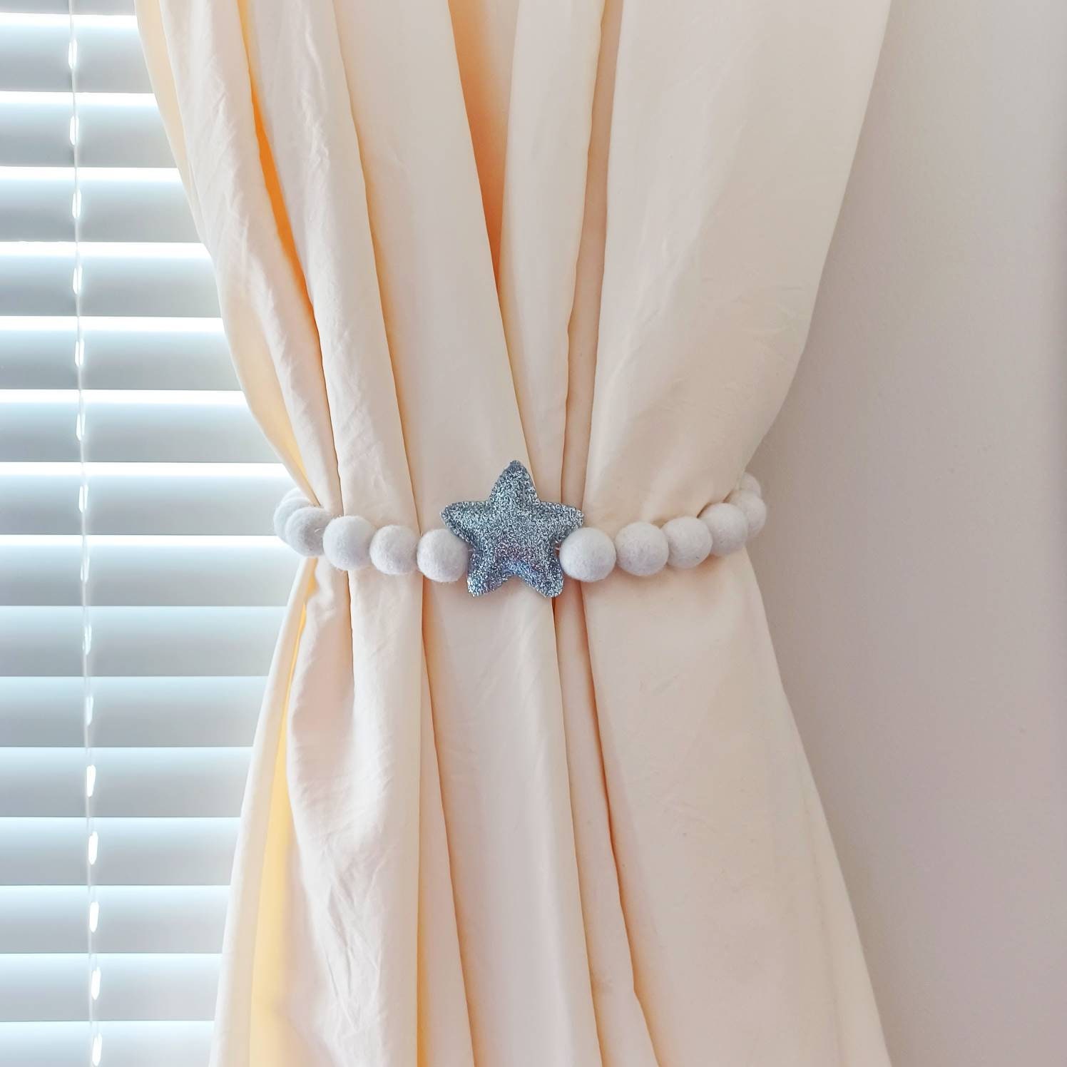 "This star curtain tie back is made of glitter fabric and 100% sheep wool by me and will be per...