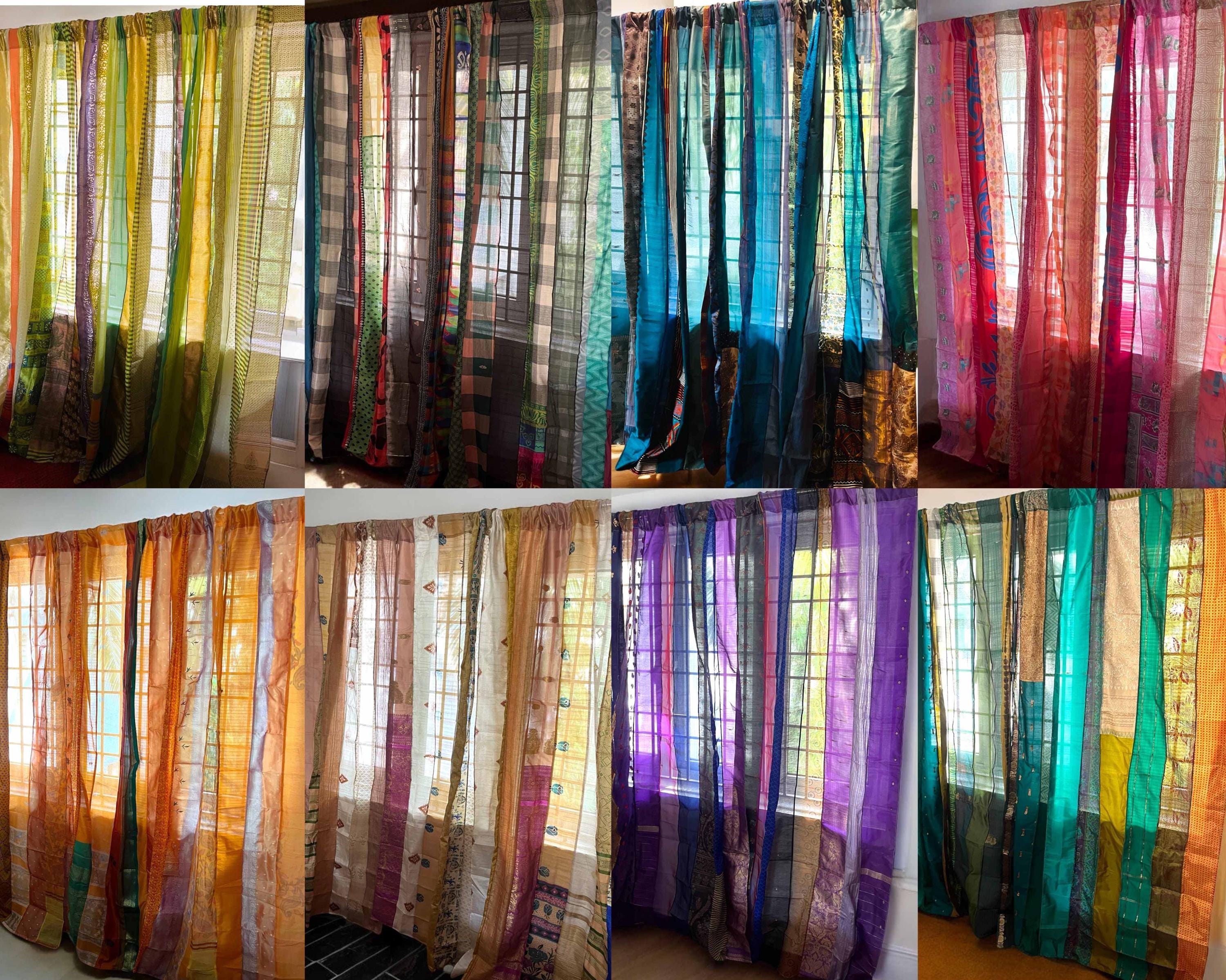 Boho Saree Curtains Upcycled Handmade Saree Curtain with Saree stri...