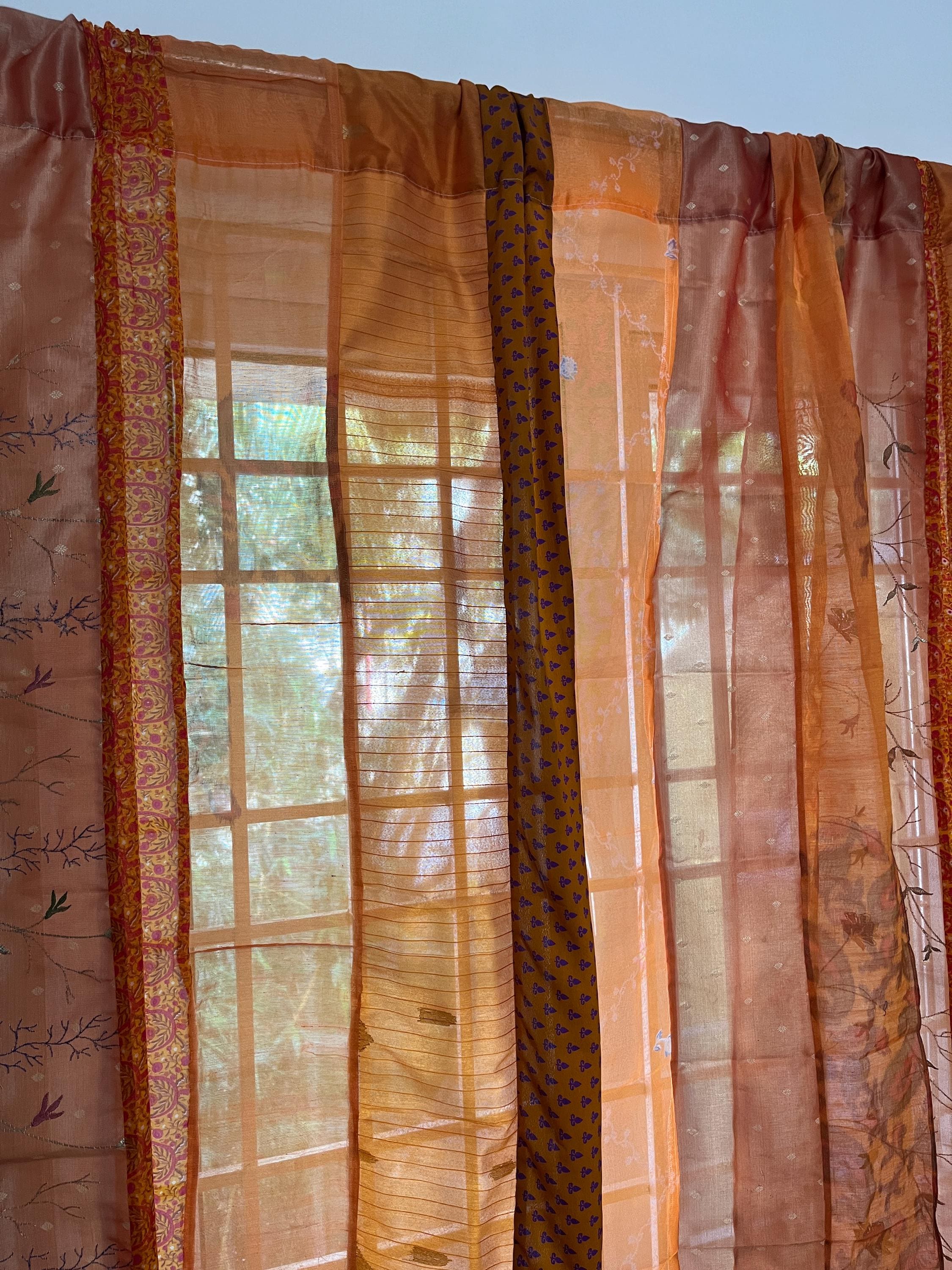 Orange Saree Curtains Upcycled Handmade Saree Curtains with Saree s...
