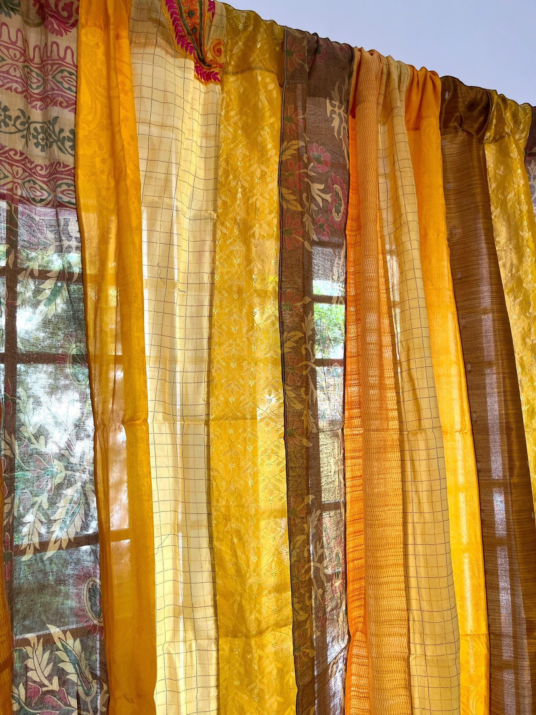 Yellow Boho Saree Curtains Upcycled Handmade Saree Curtains with Sa...