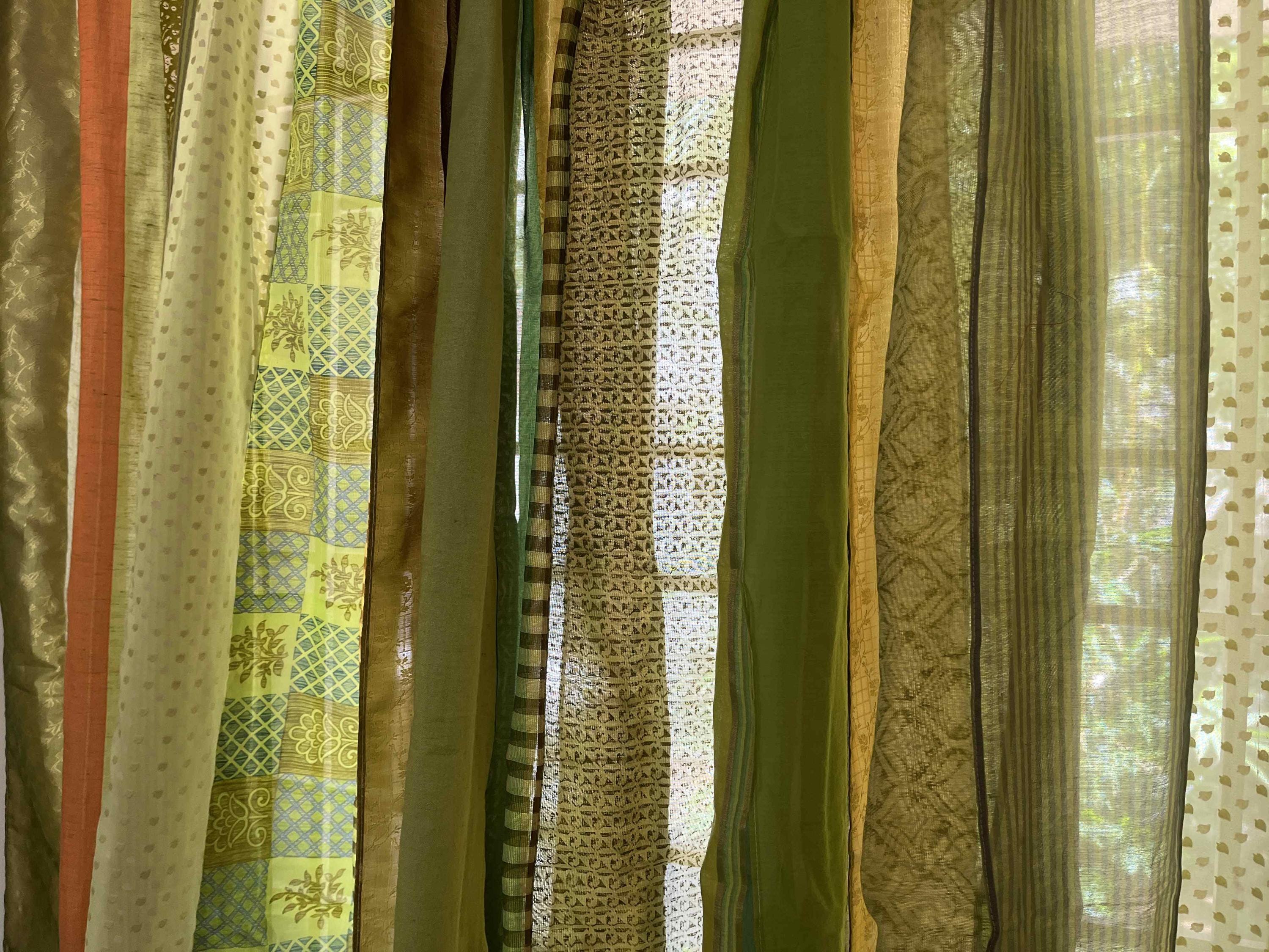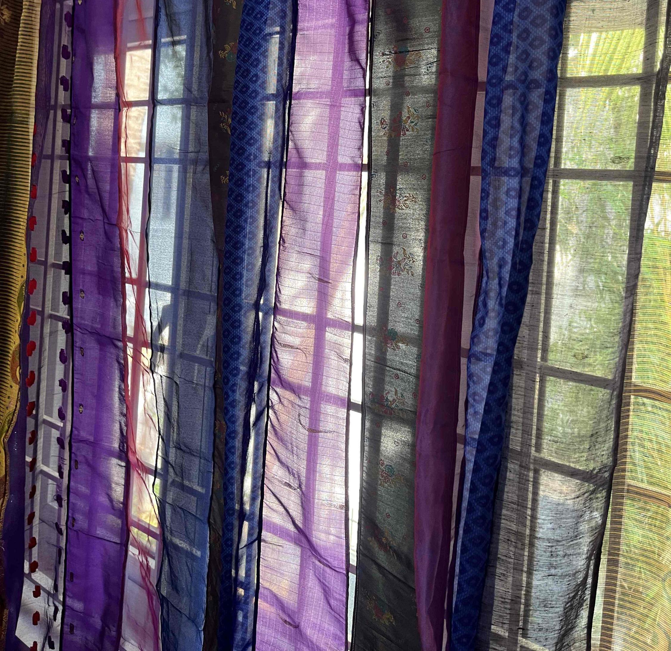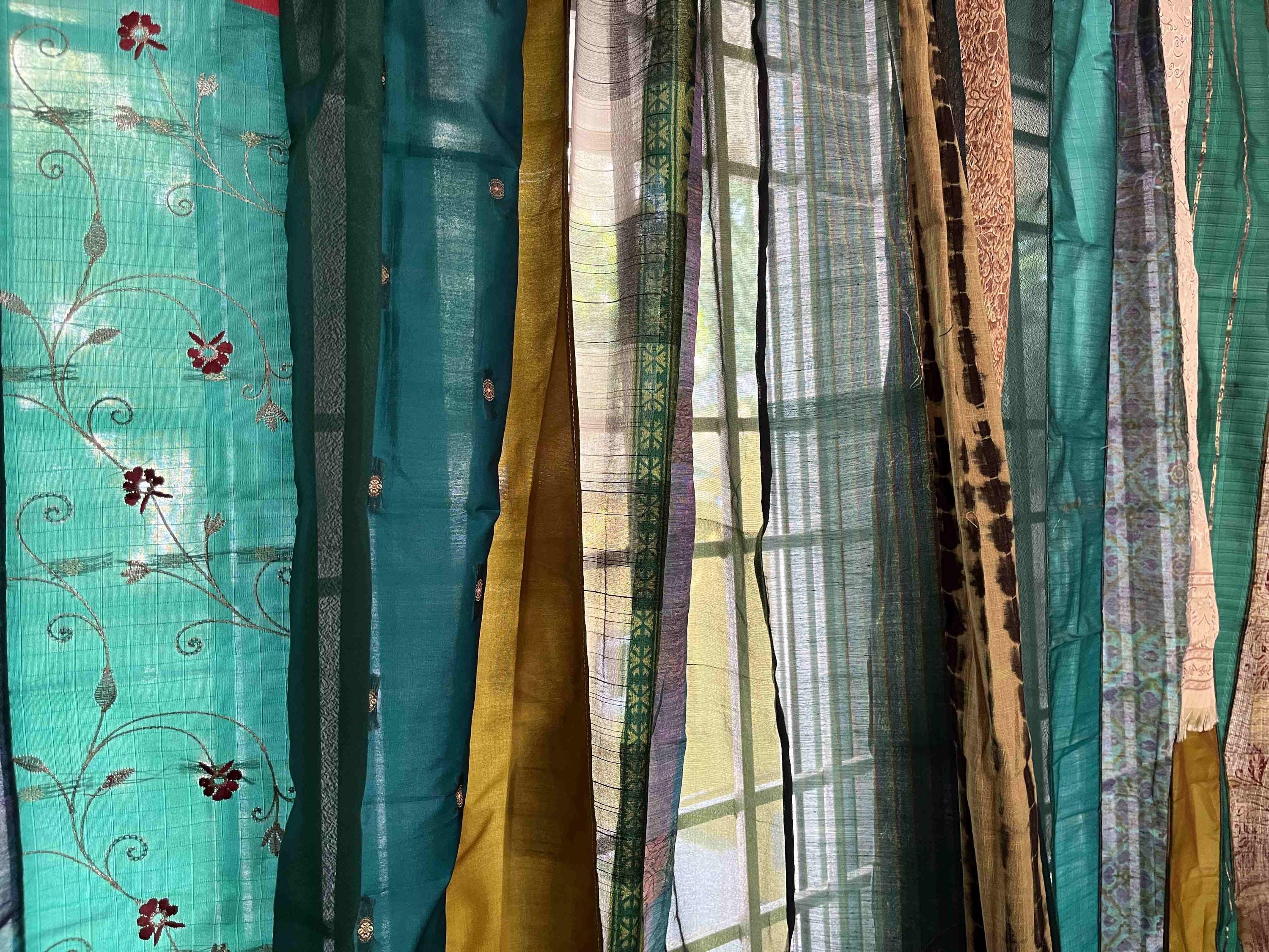 Hand made Saree curtains using saree strips that are thoughtfully up-cycled with colorful saree stri...