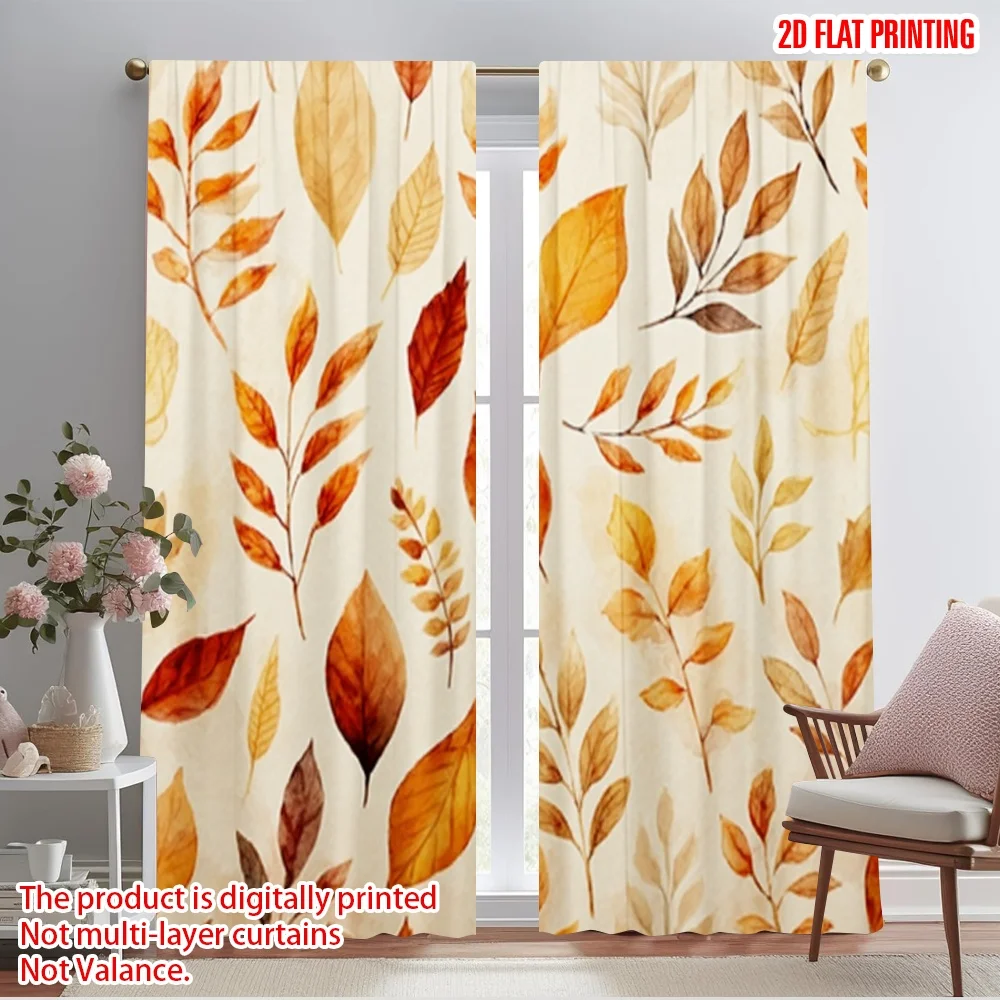 2pcs 2D flat printing Drapes Autumn Leaves 100% Polyester Without Electricity All Season Party &...