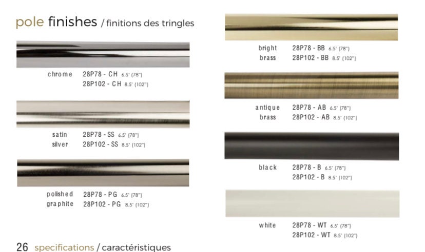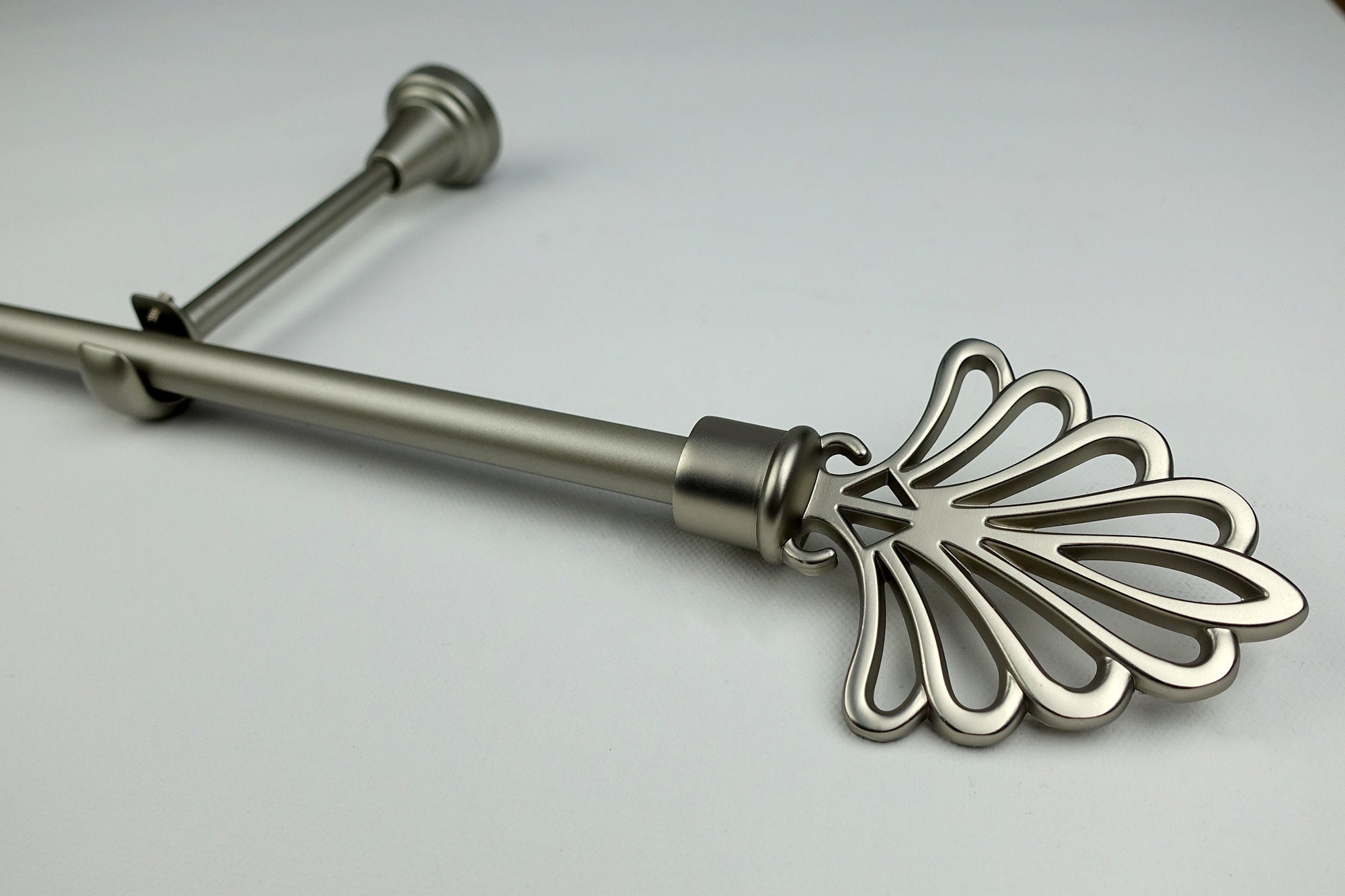 6.5ft, 8.5ft, 13ft, 16ft Designer Drapery rods. High quality metal plated finishes: Chrome, Satin Si...