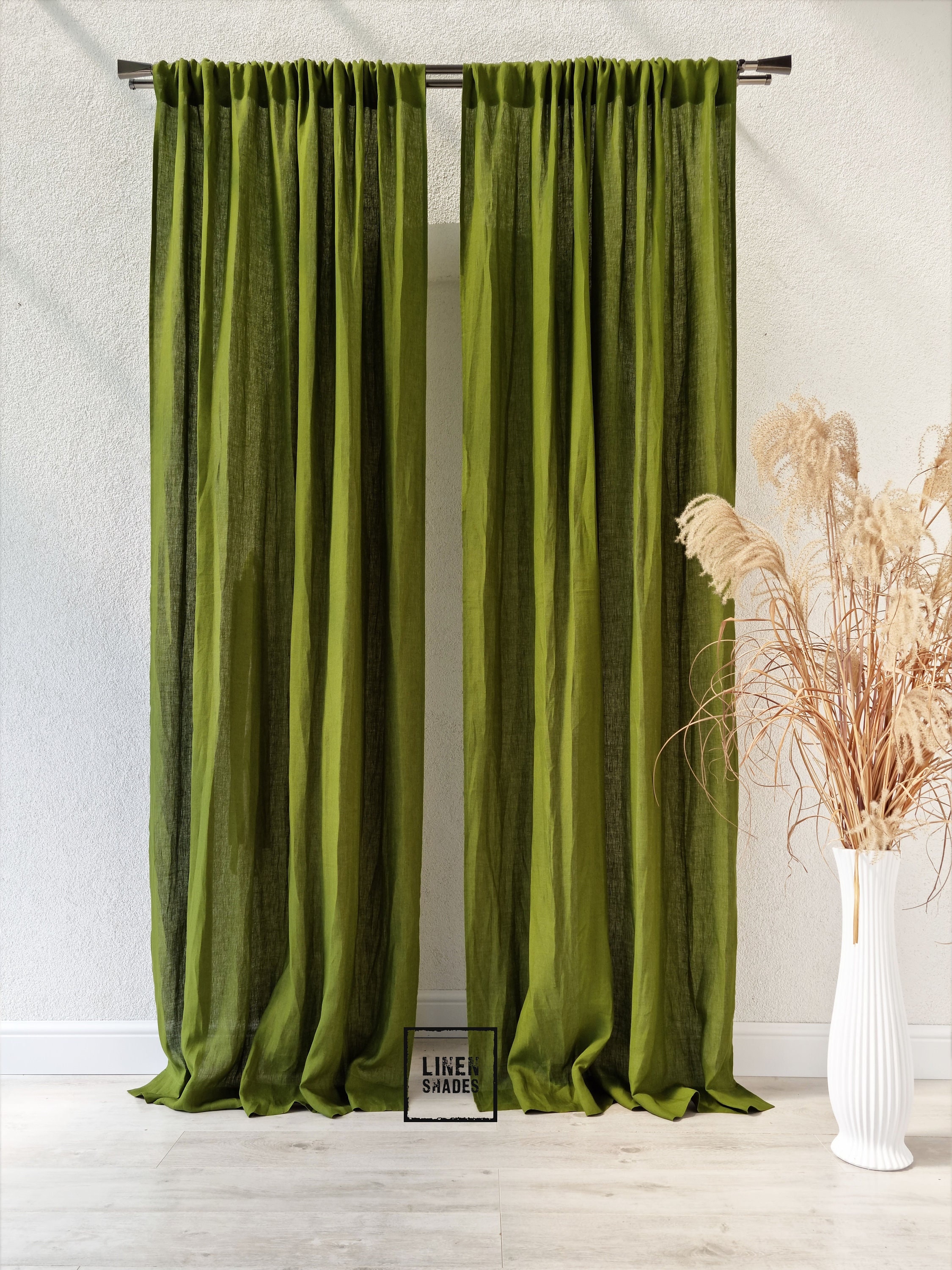 "56\" (143 cm) wide moss green bedroom linen curtain (1 p...