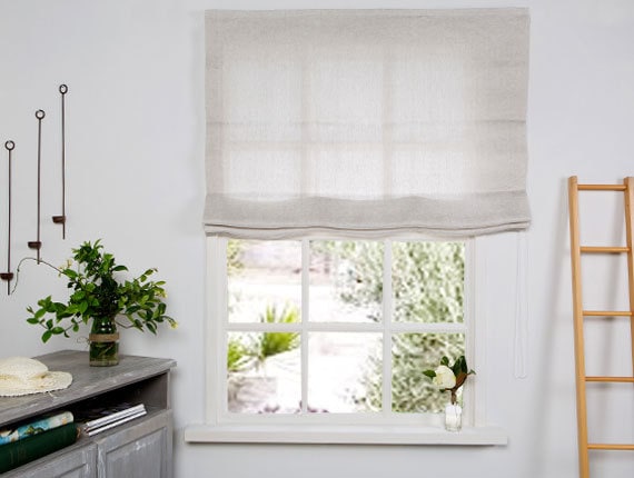 Washed White Linen Roman Blind- Hand Finished- Made to Measure Roman Blind- Bespoke Roman Blind- Lin...