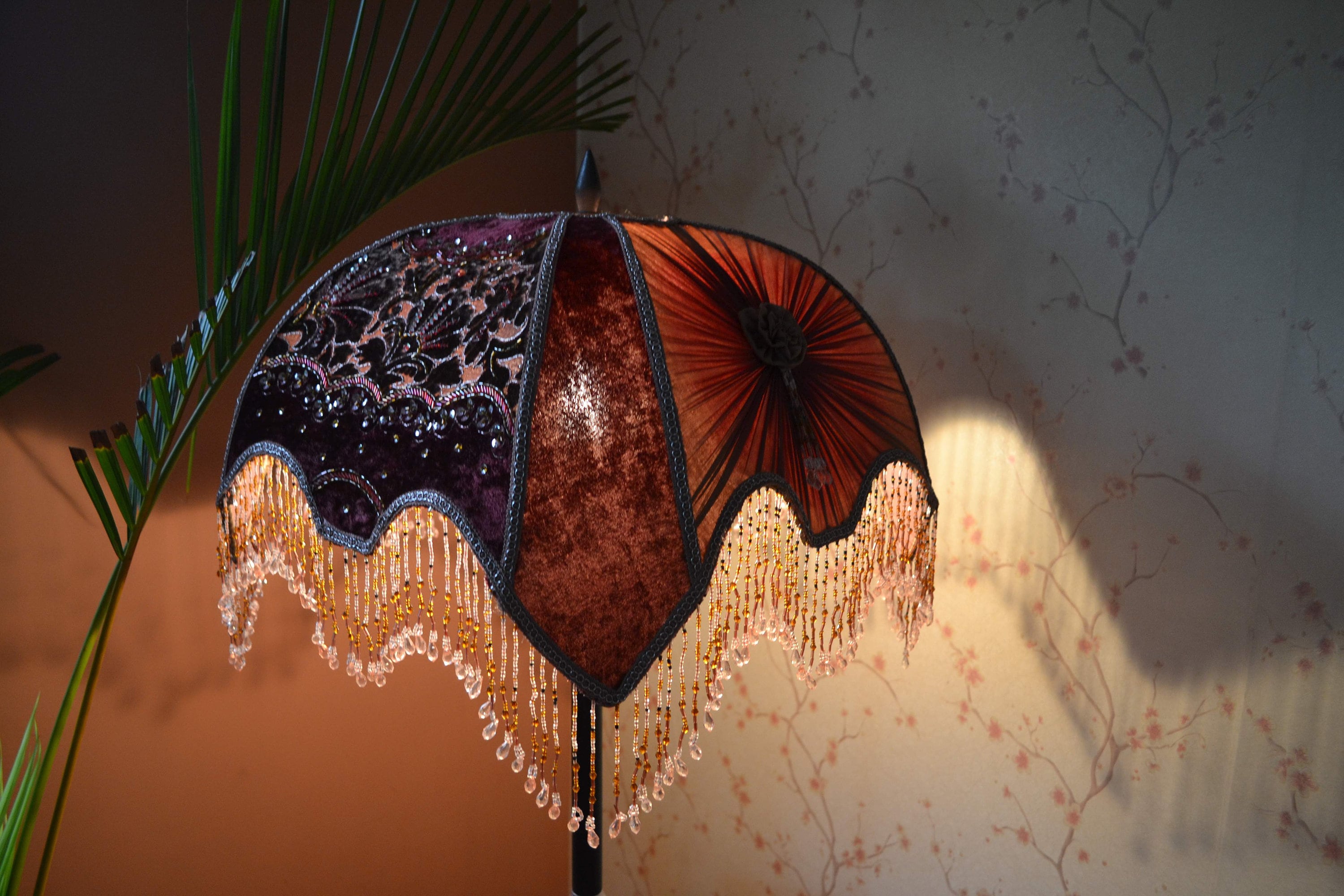 This orange lampshade has a beautiful fabric. This fabric is designed by Shadowbright. This lampshad...