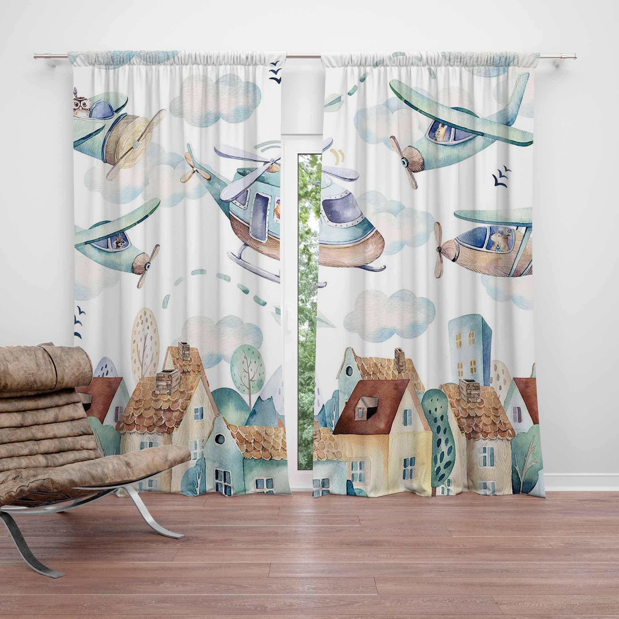 Flying Plane Nursery Curtains Airplane Kids Bedroom Curtains Black ...