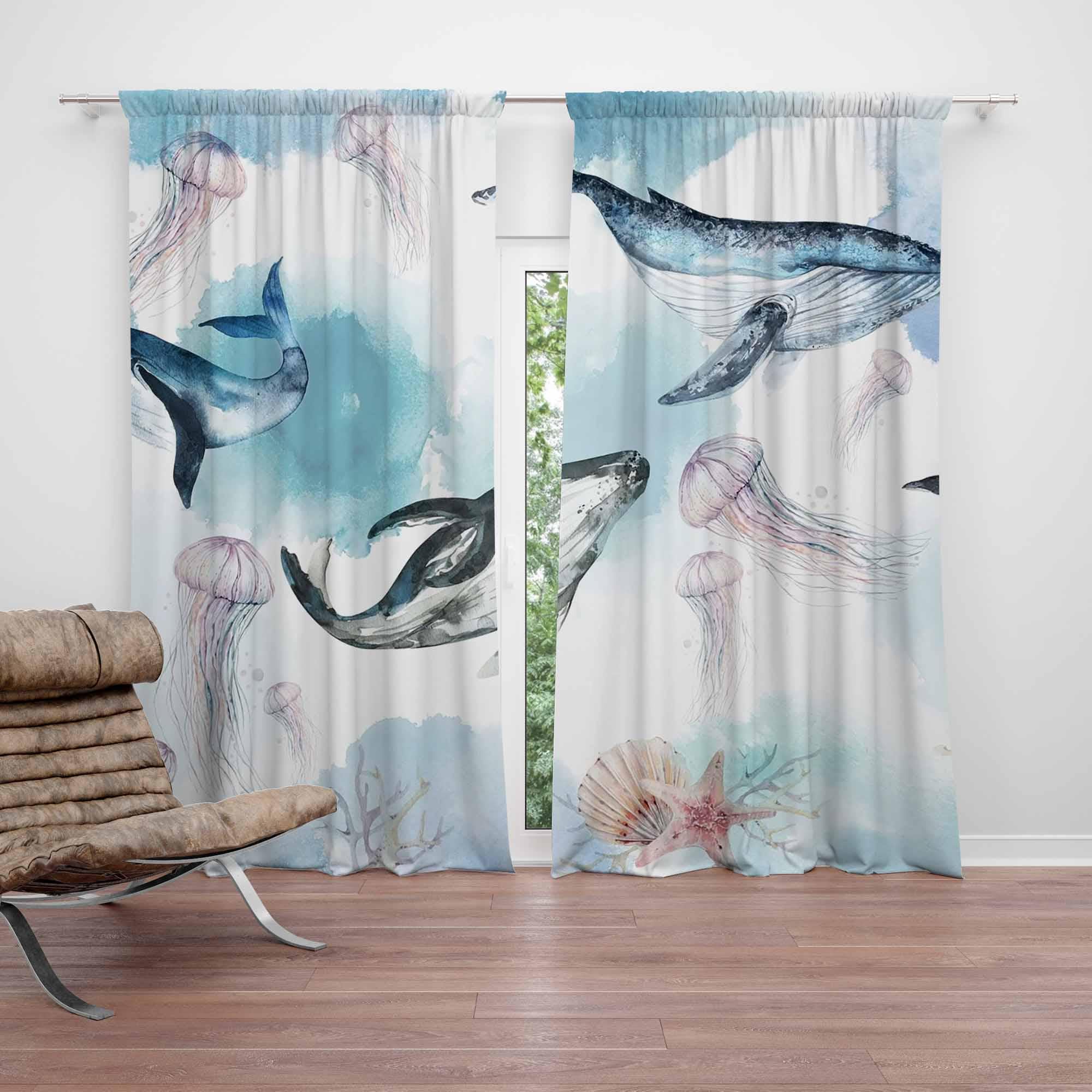 Sea Animals Nursery Curtain Ocean Whale Kids Bedroom Black Out Curt...