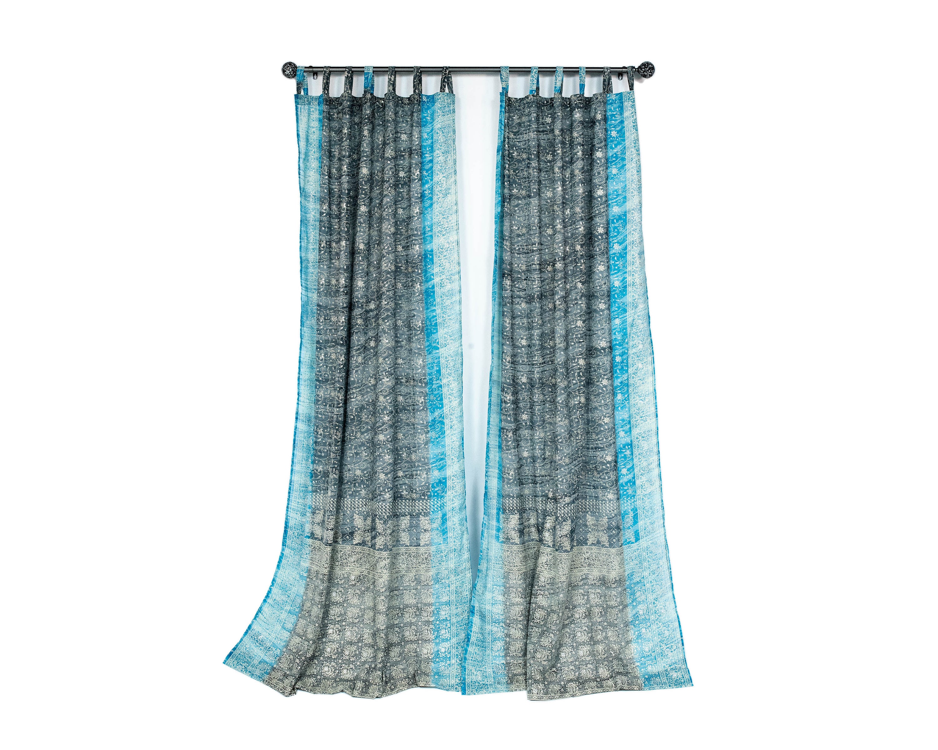 Sari Curtains Boho light filtering sheer drapes Gray silver Turquoi...