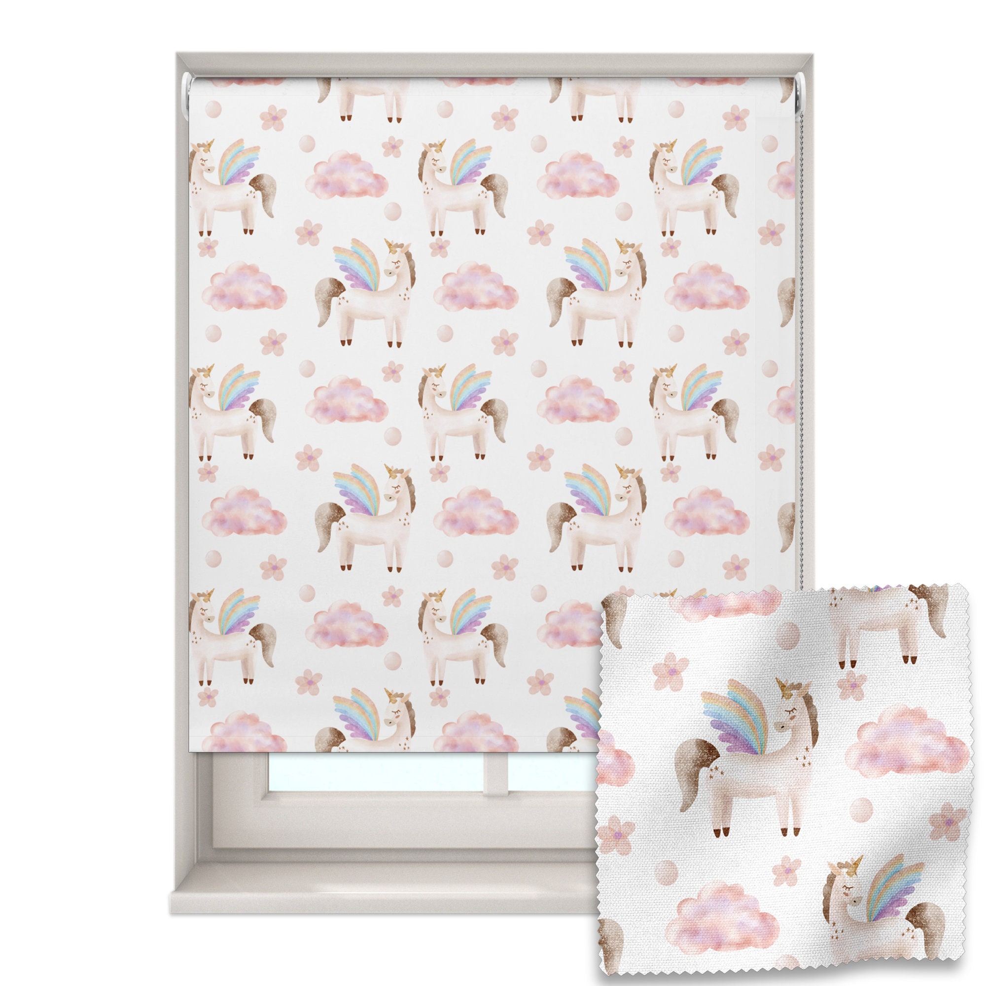 Unicorn and Clouds roller blind, Children's roller blind, Made to m...